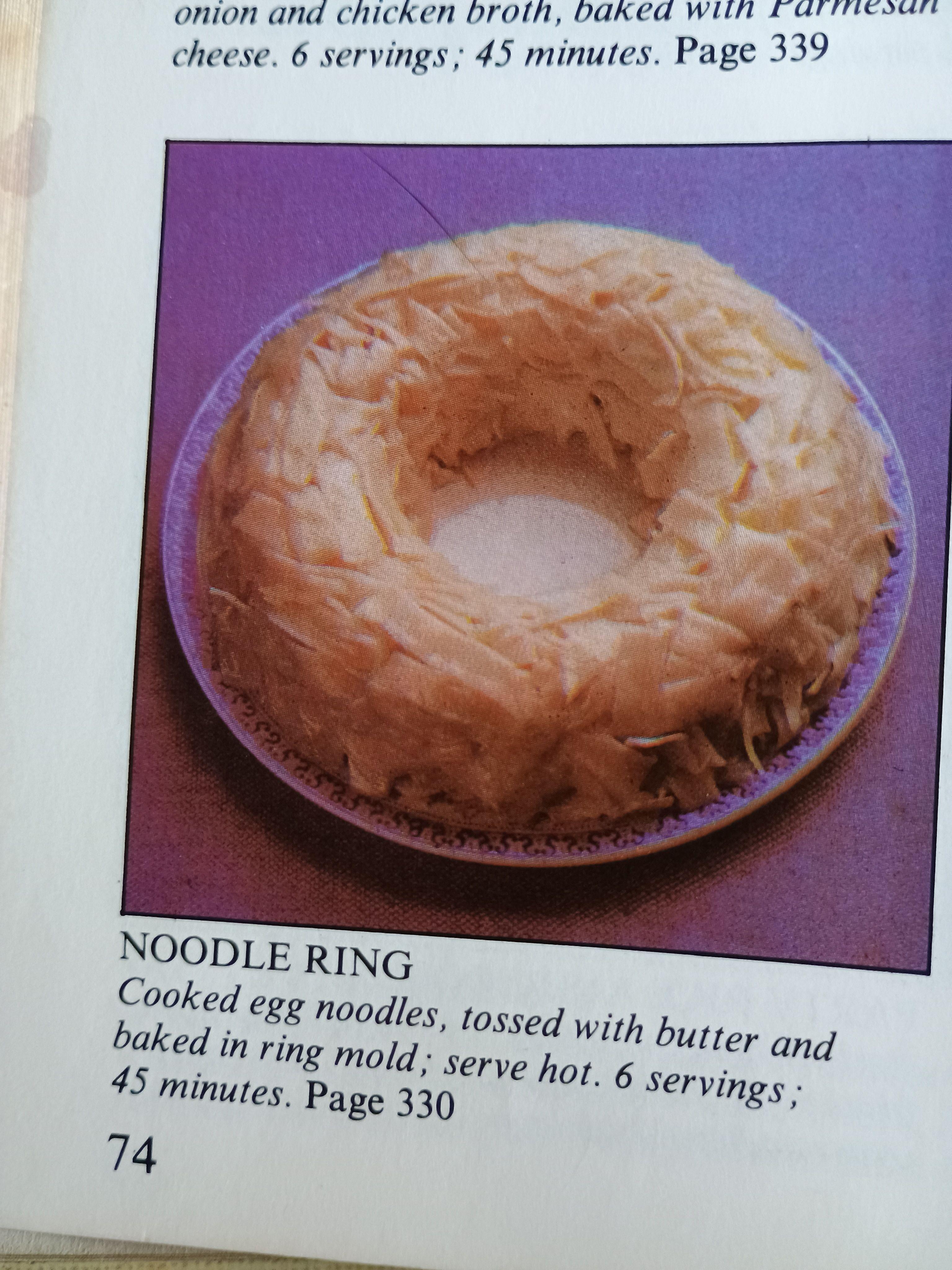this one is truly baffling. like i can get the “logic” behind the disgusting jello salads but i have no idea what baking alread-cooked egg noodles adds.