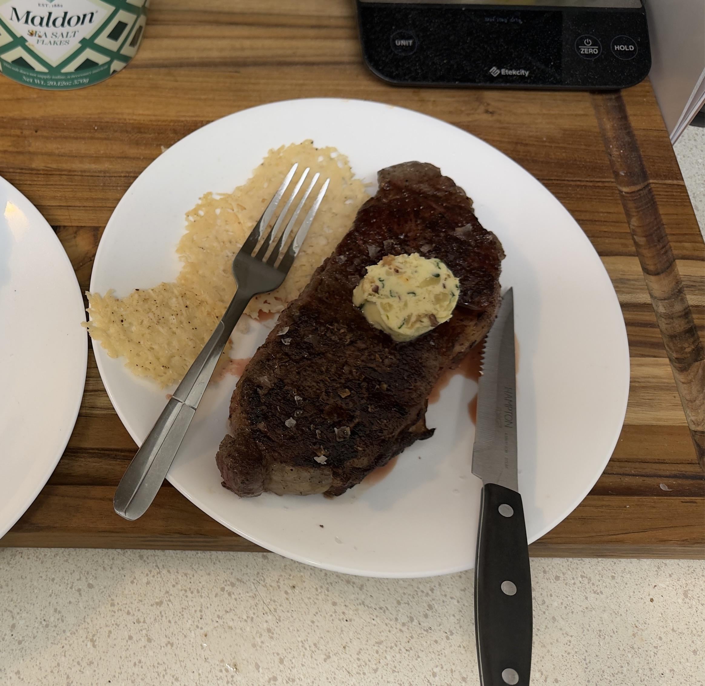 Topped with Maldon Sea Salt & Roasted Garlic Compund Butter
