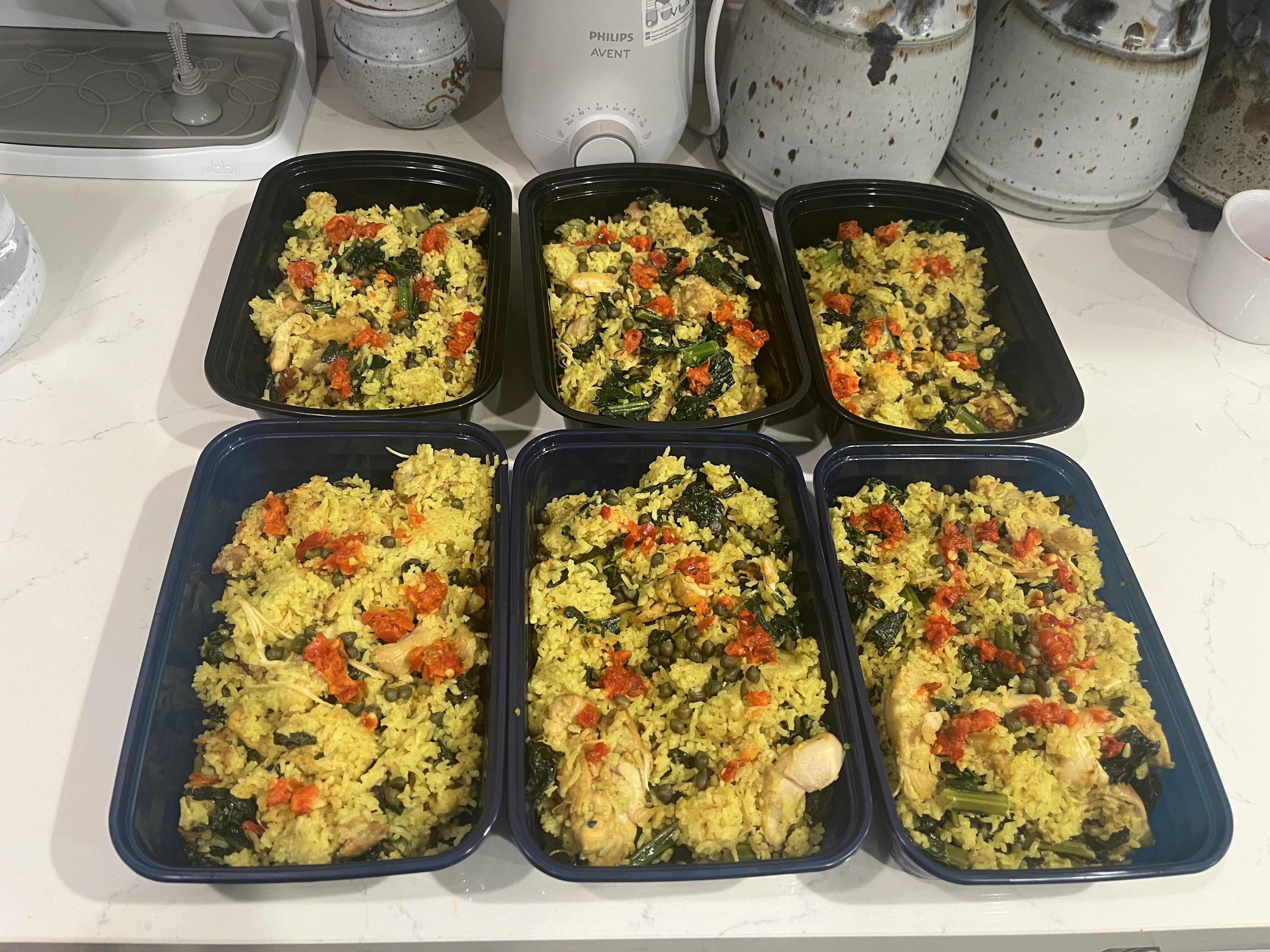 Chicken thighs, kale, and basmati rice seasoned with garlic, onion, tumeric, and chile, all cooked in coconut milk. Topped with capers and fermented Calabrian chile.by badgrrrlnini 1 Comment nillawafer80 7 months ago This look good. Any idea on the macros?Write A CommentYou must be logged in to post a comment.