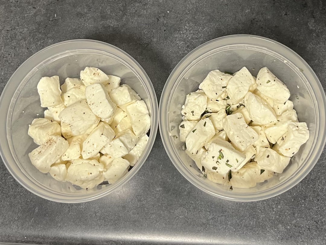 Today we made fresh cheese curds (in a matter of hours!) seasoned one tub with just salt & pepper, the second also has rosemary. They are delicious and it was actually so easy!!!