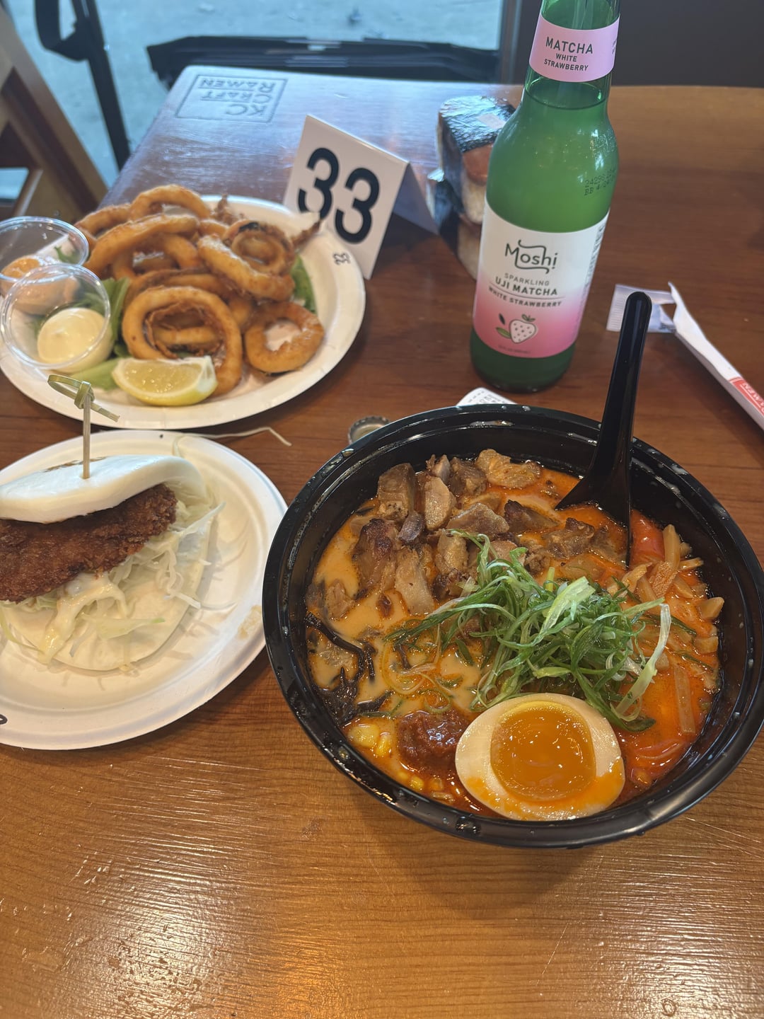 Spicy miso ramen. This was my first time trying ramen that’s not from a bag and it did not disappoint!! Seeing the chefs hand pull the noodles, and tasting the combination of such delicious flavors in a bowl made for a great experience.