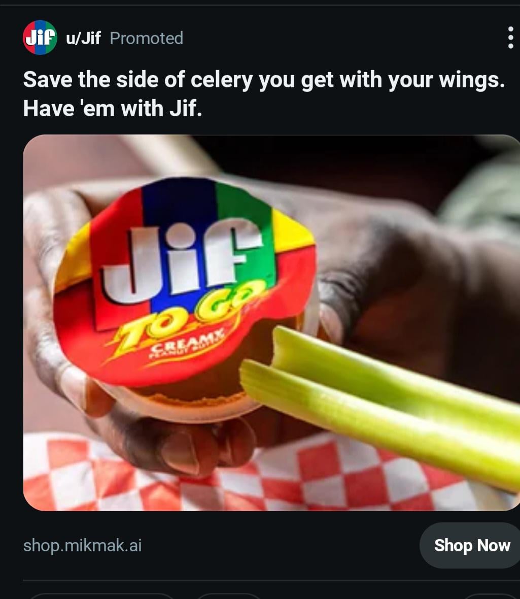 Or, conversely, dip your wings in Jif. I think their marketing missed with this one.
