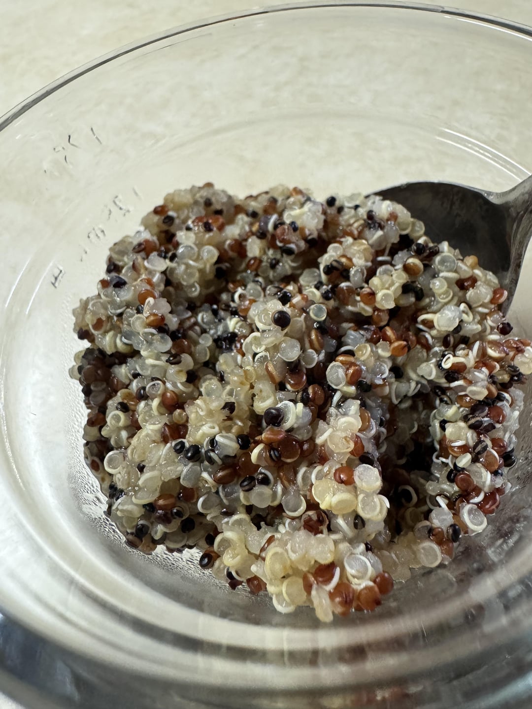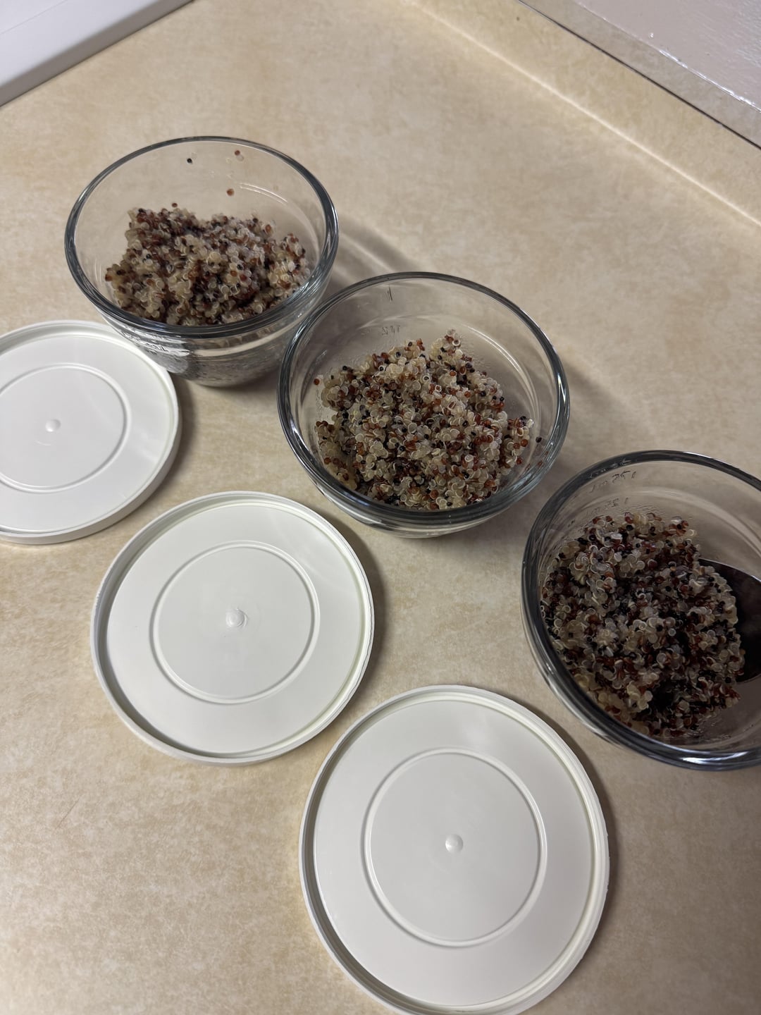 I have never made quinoa before. It turned out pretty good! I like it much better than rice. You practically cook it the same way too. Here’s a bit of my meal prep for my breakfasts. I used to put almonds (of which I can’t have now) in my Greek yogurt with blueberries. I bet this will pair really well!