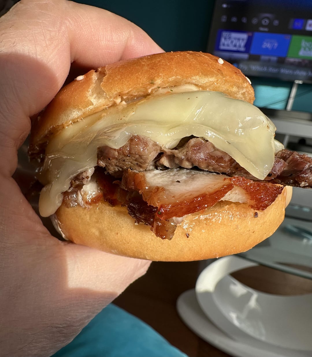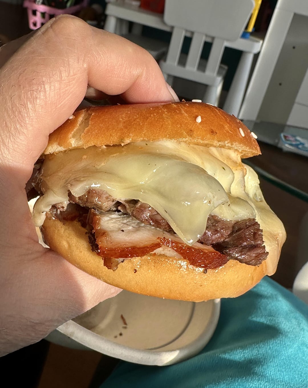 Brisket with chicharrón,Swiss and chipotle garlic mayo. by nooyork 1 Comment Exktvme4 8 months ago (as George Takei): oh myyyyyyyyWrite A CommentYou must be logged in to post a comment.