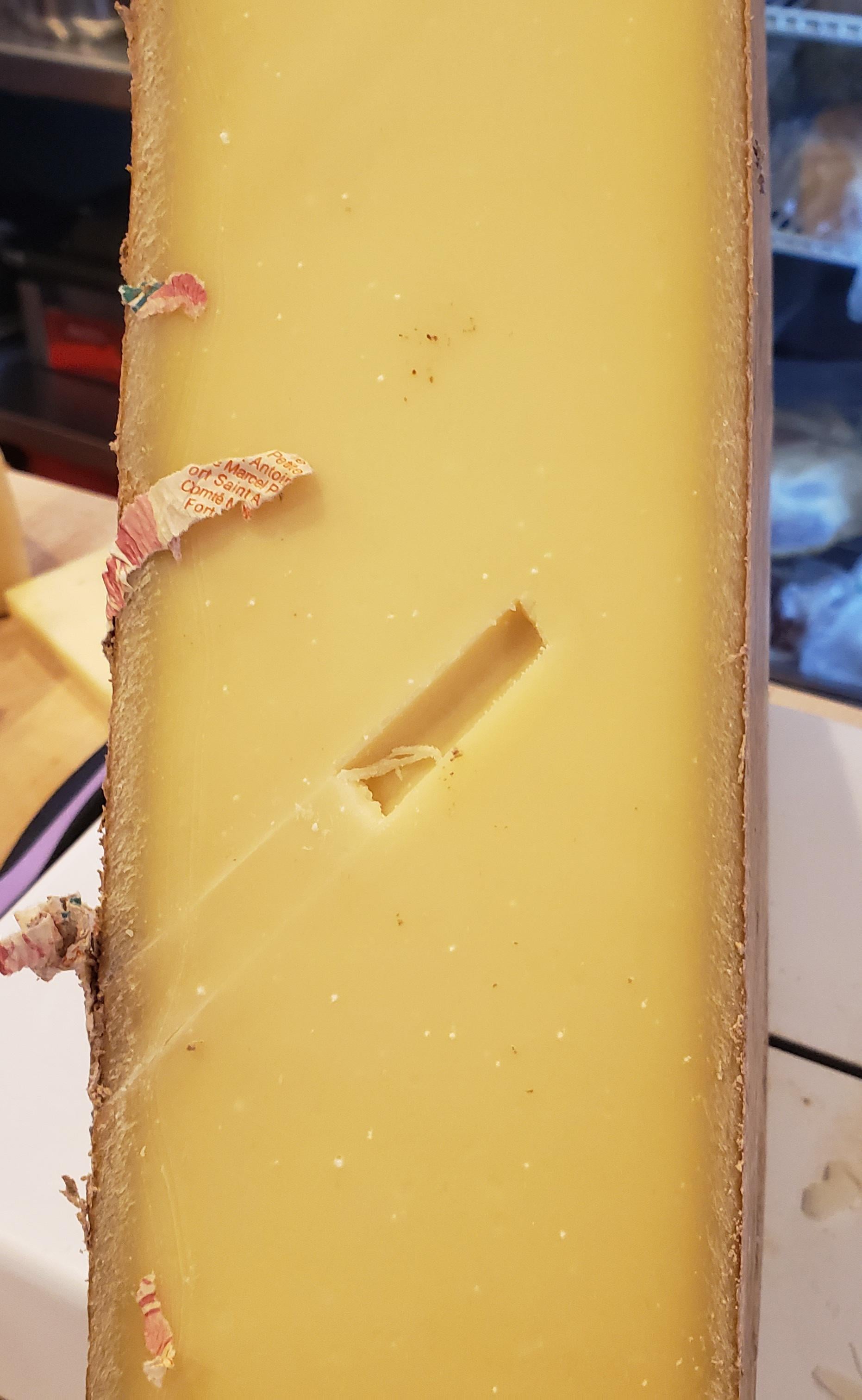 Just opened this 1/4 wheel today. The remnants of quality control from Marcel Petite. Around 1-5% of Comte wheels are actually tasted. Exciting! Like a little easter eggby nimmin13 Write A CommentYou must be logged in to post a comment.