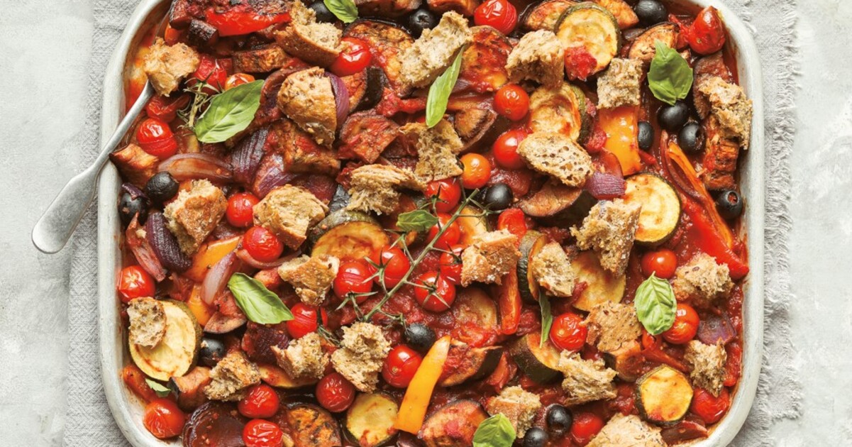 In this simple, tasty sheet pan recipe, a fresh, light tomato marinade coats eggplant, zucchini, peppers, and onions. It’s a nutritious, six-vegetable meal that’s perfect for midweek.