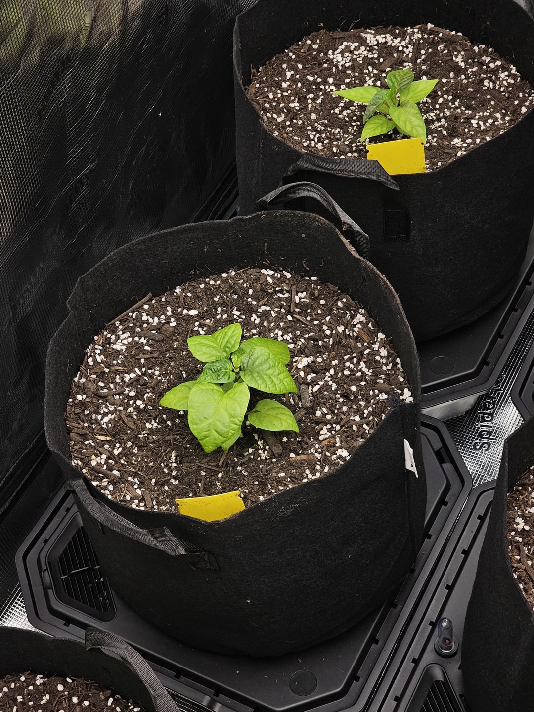 My reapers were looking rough after moving them to 5 gallon grow bags.(Yellowing and looking a bit black). After dialling the lights back slightly, changing the light schedule from 18/6 to 16/8 and giving them their first liquid feed, They are getting some good colour back and starting to look a little bit happier, keen to see how they go after a few more feeds and some more time. Hopefully the roots are going wild under the surface. This community is super helpful, you are all awesome. Happy growing. 🌱