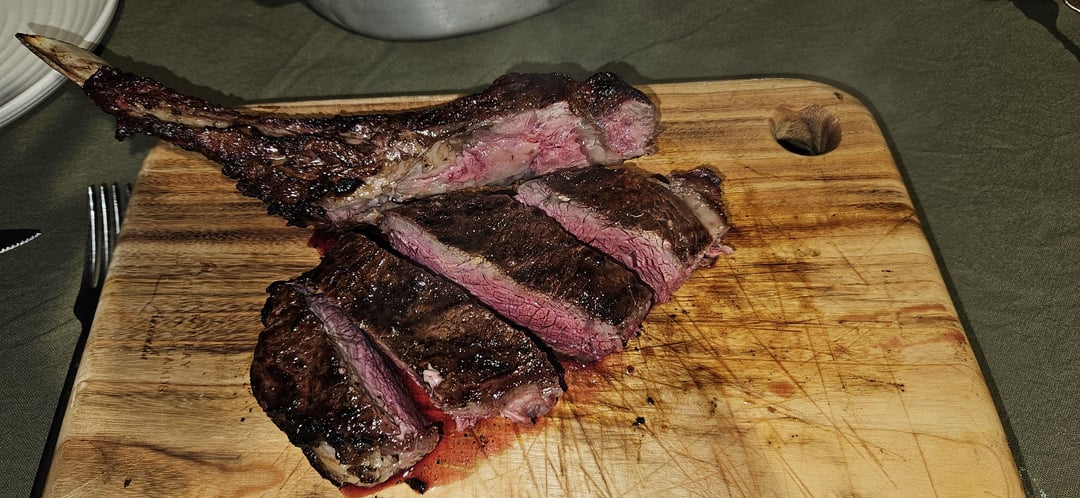 Nothing fancy, room temp Tomahawk pre-seasoned with some lemon juice and Worester sause bbq salt. There's some pork belly rashers on the side.