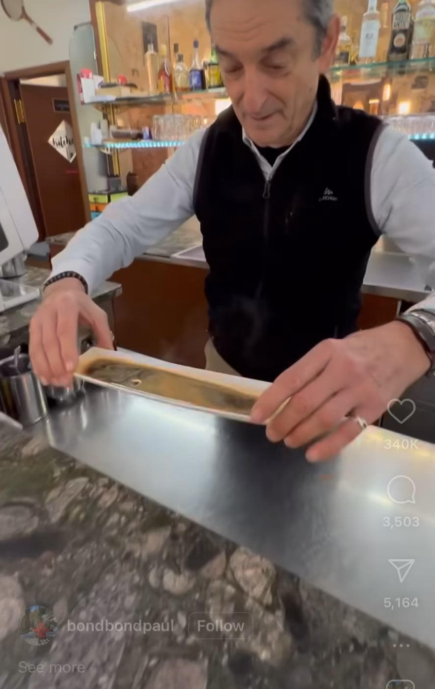 He said caffè lungo. “lungo” means long in Italian. So is probably a staged joke where the guy recording asked for a long coffee