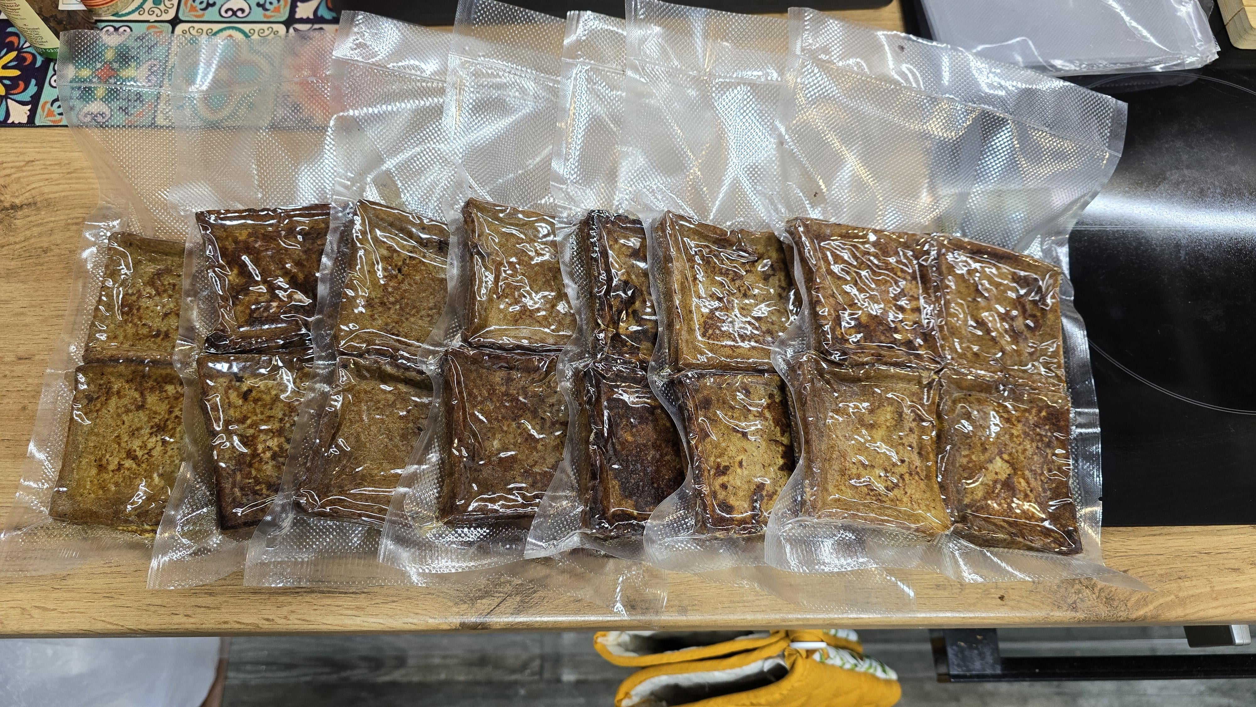 A full weeks’ breakfast worth of cinnamon and clove powdered French toast, vacuum sealed for freshness