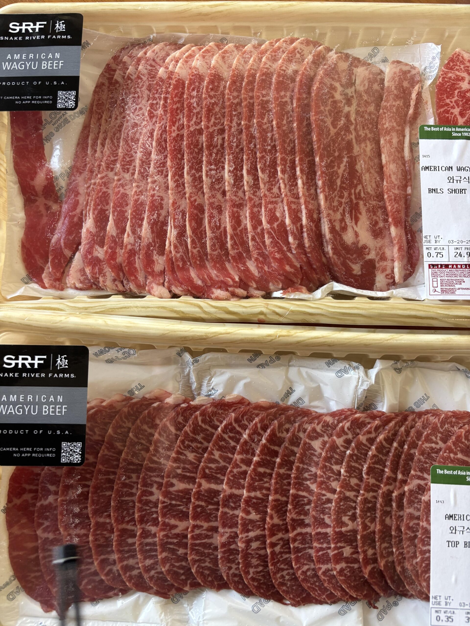 Bought some thin sliced Wagyu at Korean market. In my area whenever I’ve seen Wagyu it doesn’t have good marbling so had to buy this. Going to try this week and then get some of