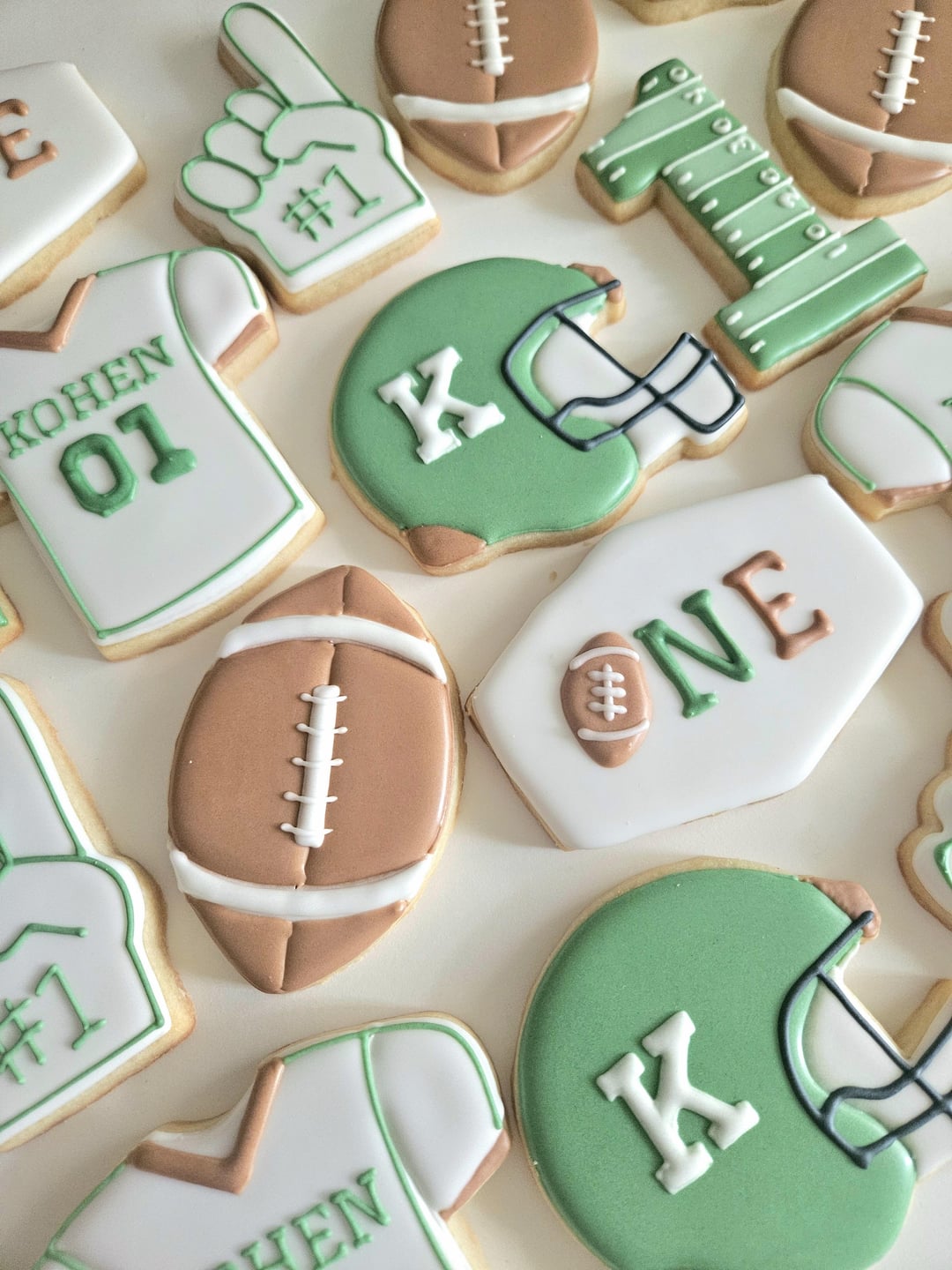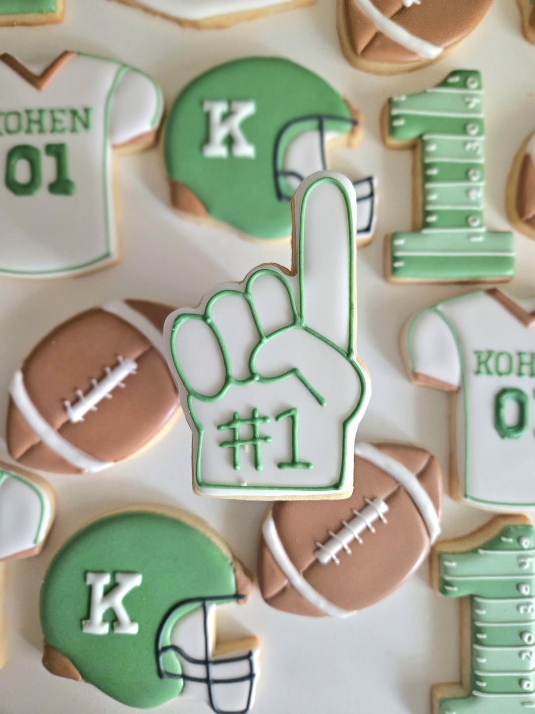 I did cookies for Kohen's mama's baby shower when she was pregnant with him and the family came back to me to ask me to make cookies for his first birthday party 🏈. Return customers are my favorite!by KindlyYam6687 1 Comment justPizzas 7 months ago Very nice! 💚Write A CommentYou must be logged in to post a comment.