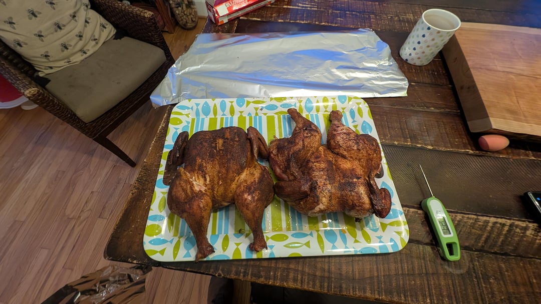 First run on the searwood. Grill did everything its supposed to. I should have pulled the chicken a few degrees or minutes sooner. Also was pleasntly surprised how accurate the probe that came with the grill wasby pap-pap-84 3 Comments SkyComprehensive8435 10 months ago This is my 3 year smoking but always looking for tips/tricks… what’s the ice water for? Lake_Dude_Here 10 months ago Looks great! CoopDelux 10 months ago Whole split chickens are my favorite thing to throw on the pellet smoker. Easy, juicy, and healthy!Write A CommentYou must be logged in to post a comment.