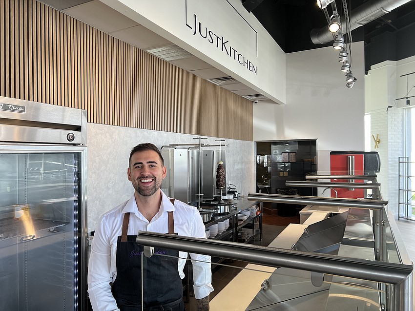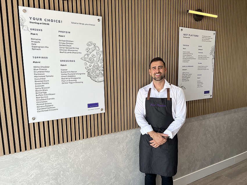 JustKitchen Fresh Salads & Mediterranean owner Justin Rohloff with the menu boards at his restaurant. It will offer platters, specialty wraps and salads, gyros and pitas, sides and a children’s menu.