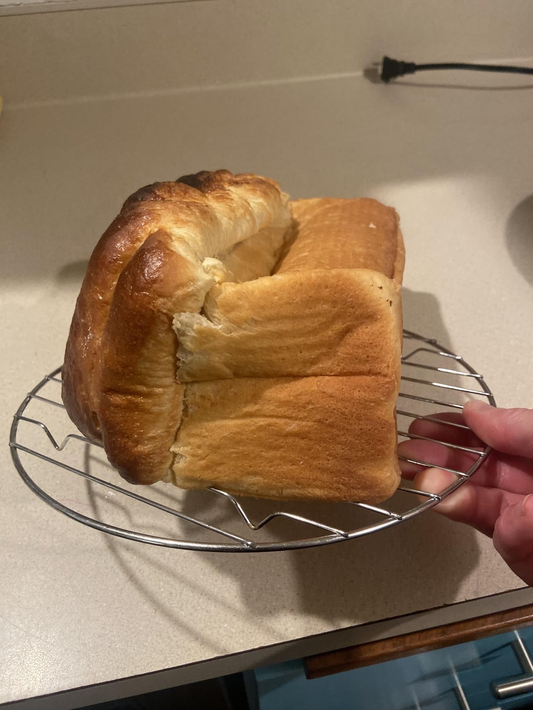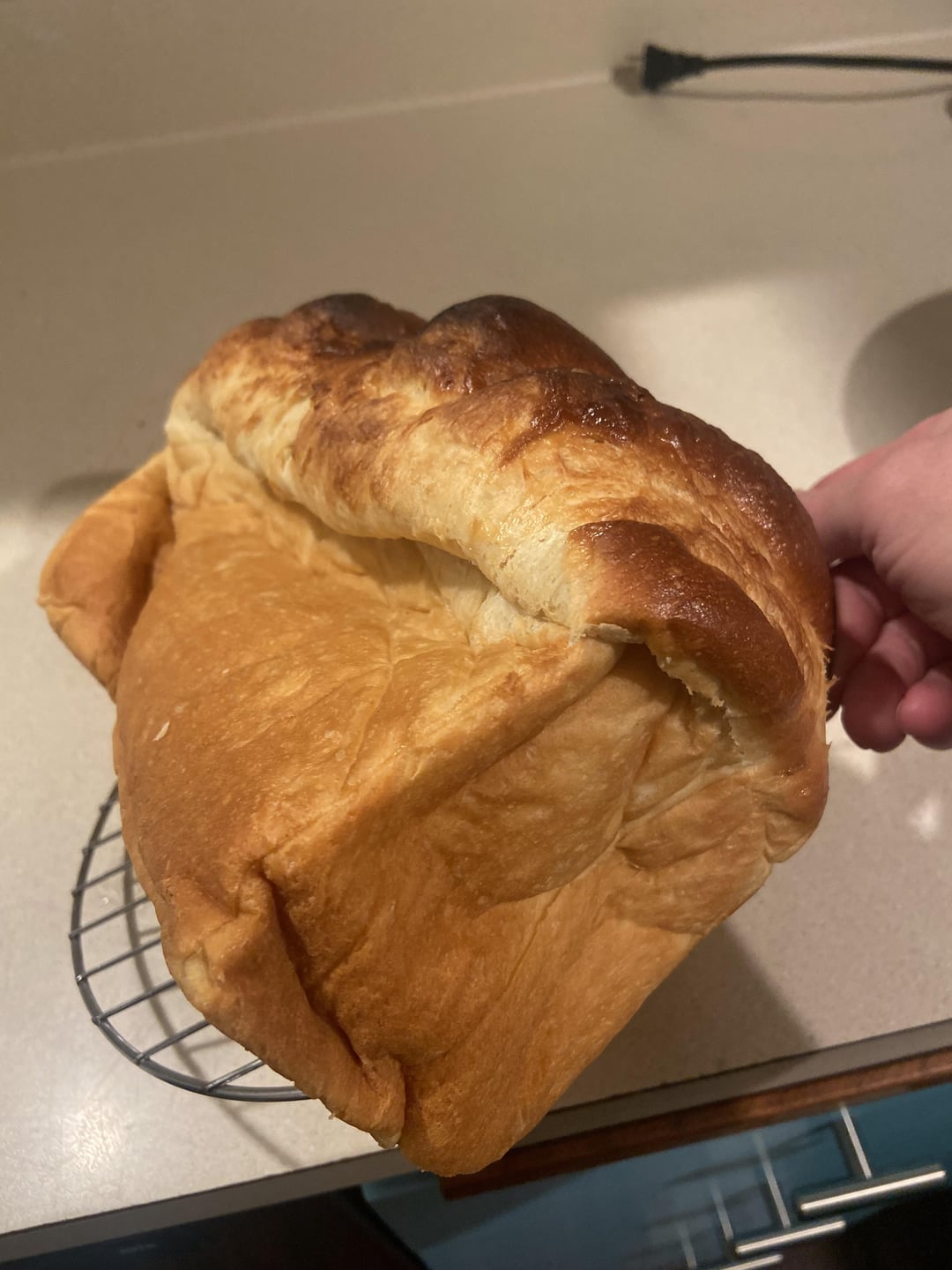 I tried a milk bread recipe I wrote down from YouTube. Looked promising. Taste 10/10, appearance….well obviously I knocked that out of the park