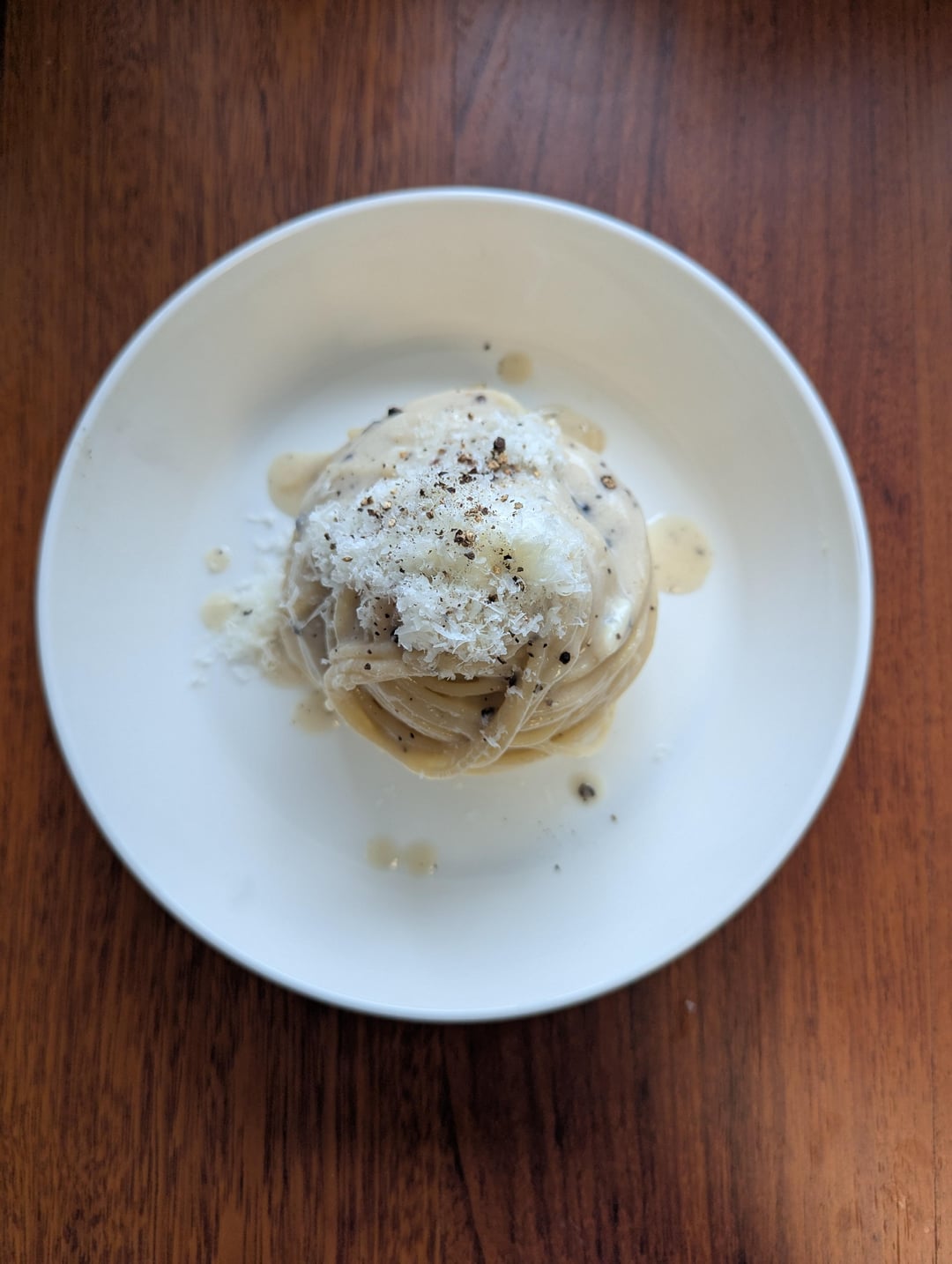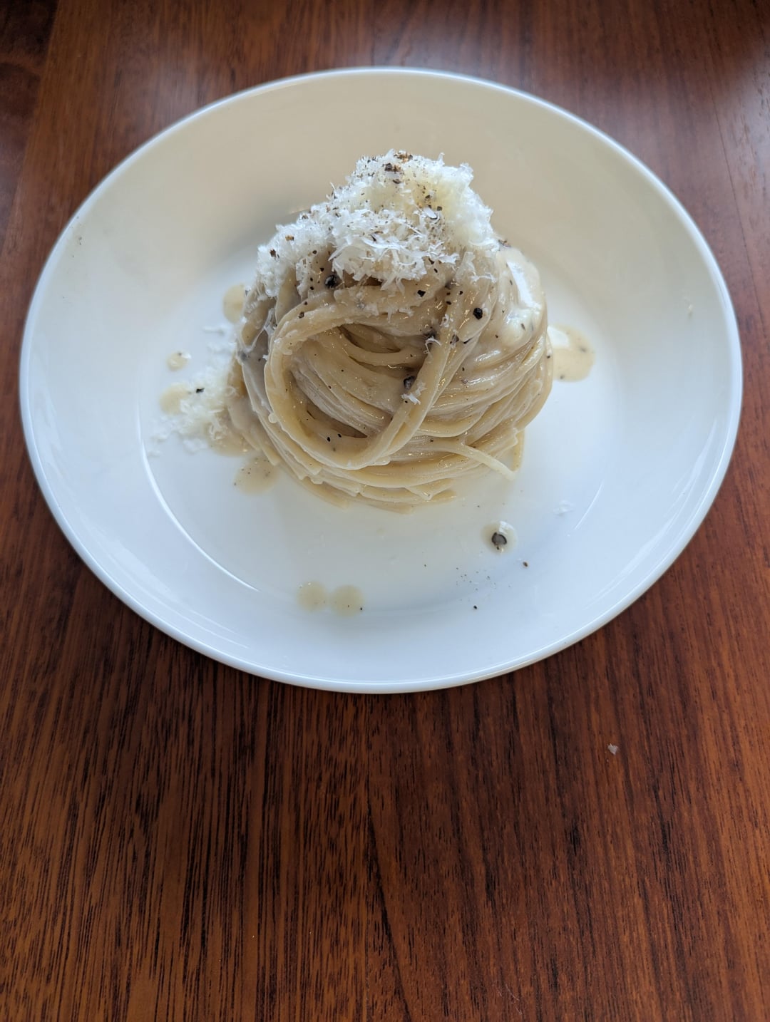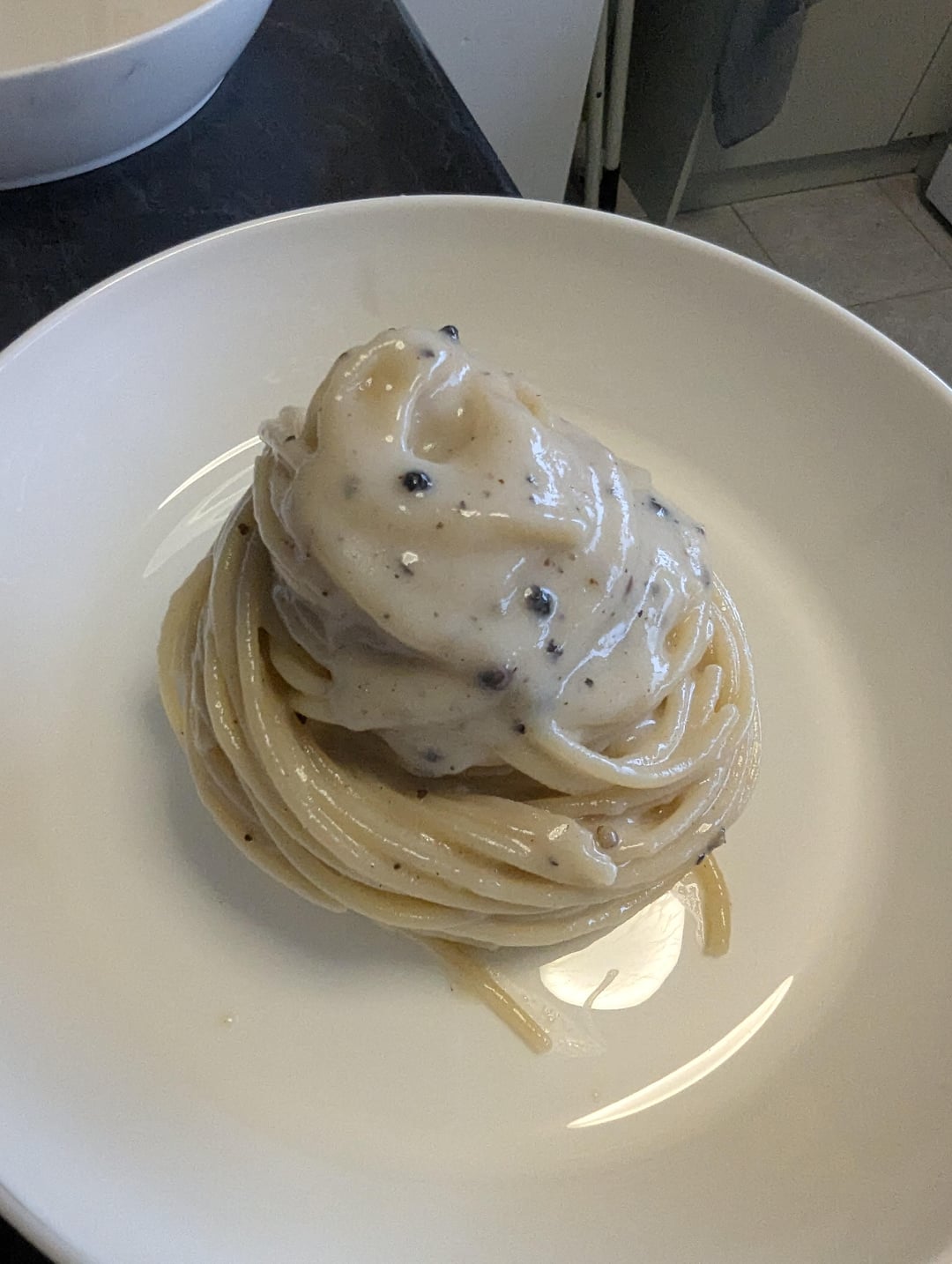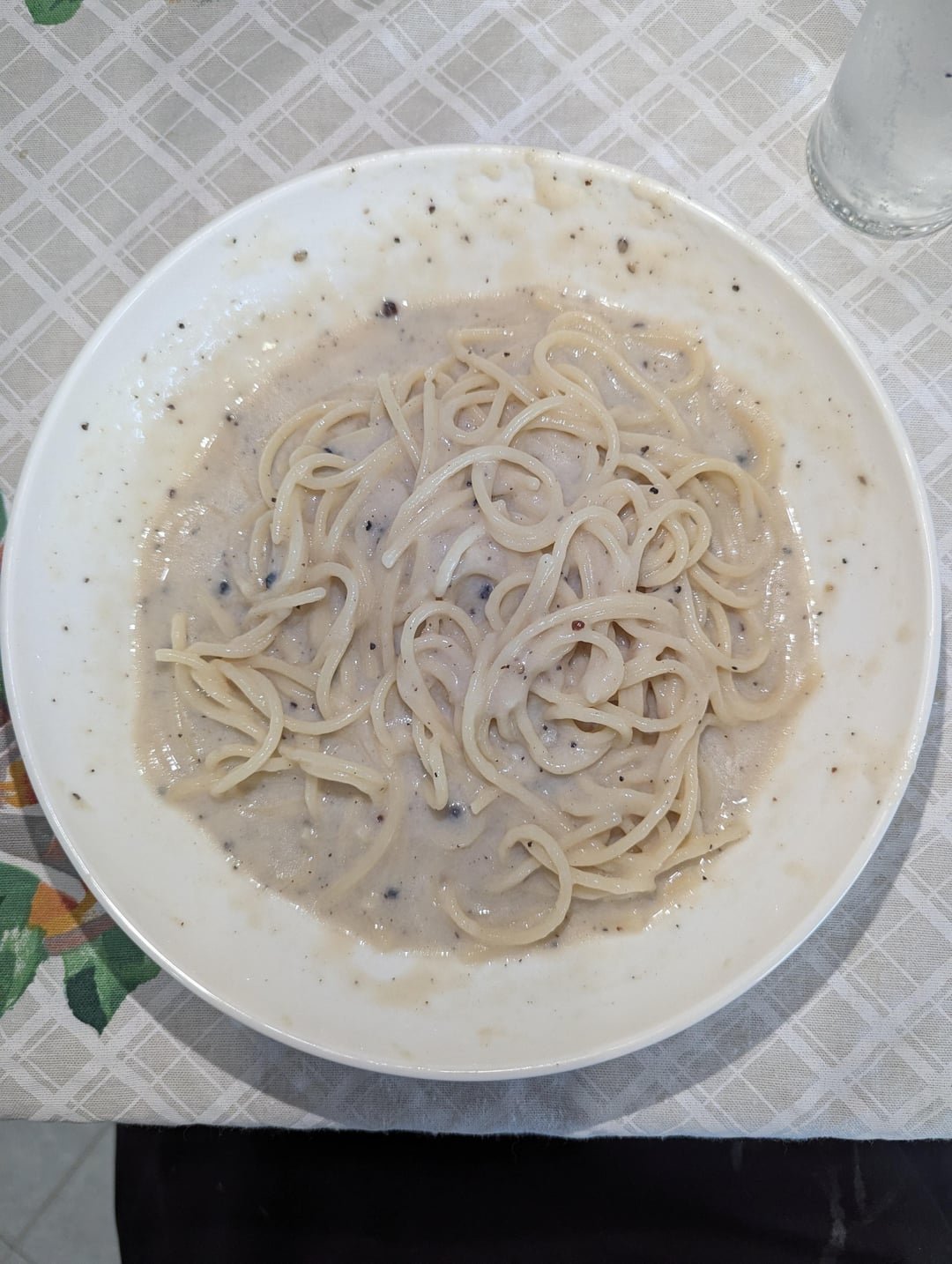 This was done using only the traditional ingredients; pecorino romano, pepper and the pasta (no tonnarelli here, had to use spaghetti instead).