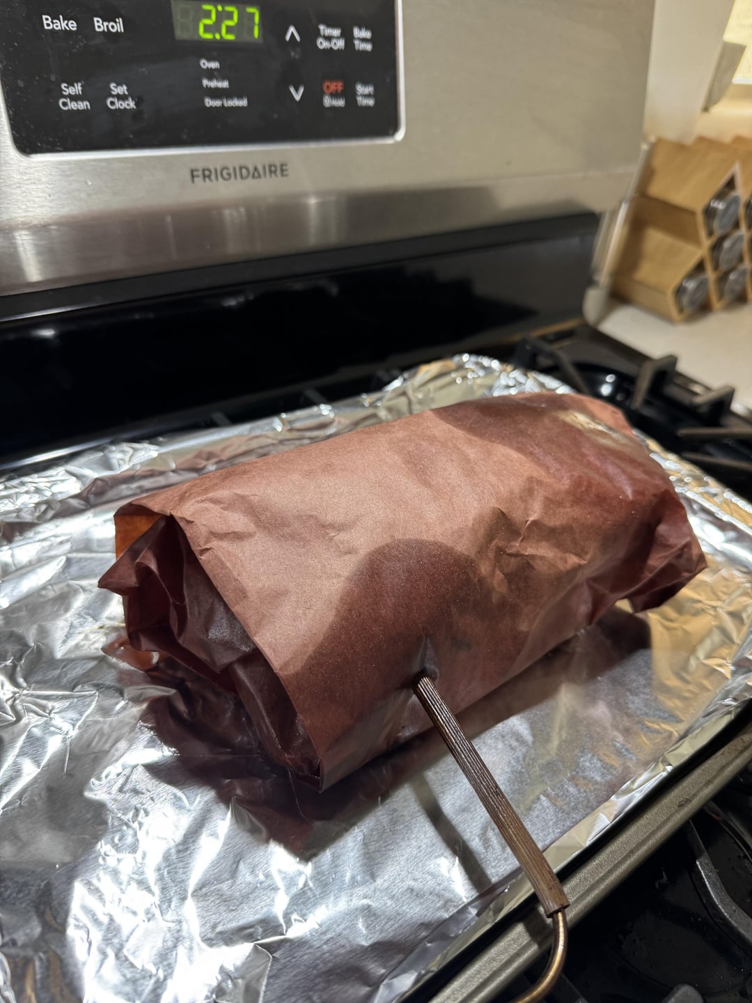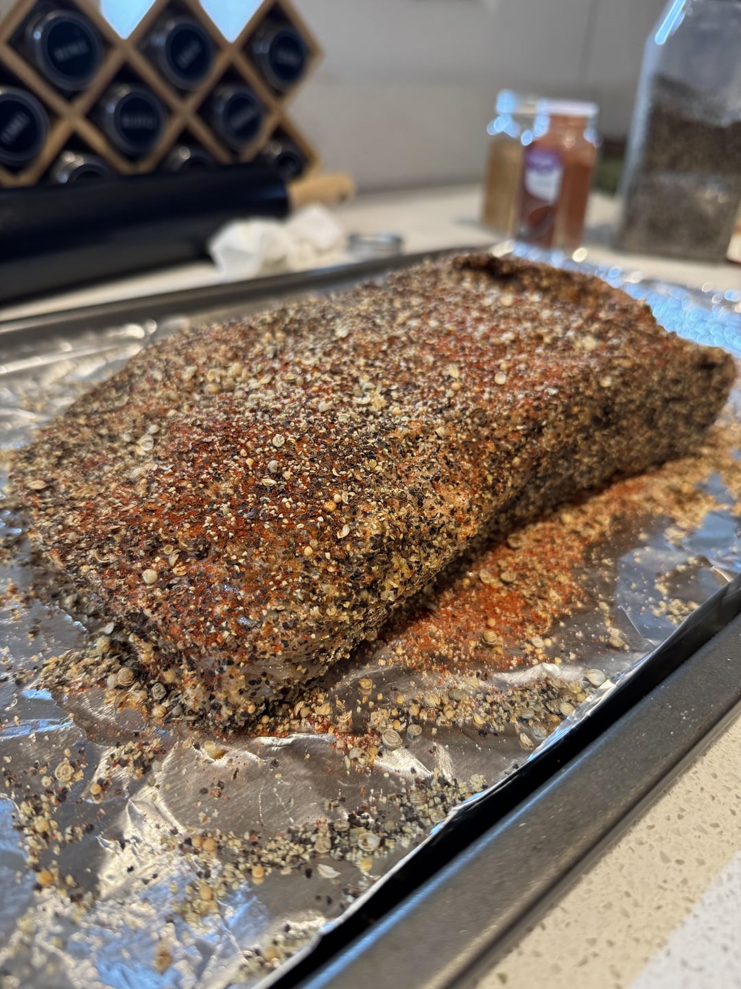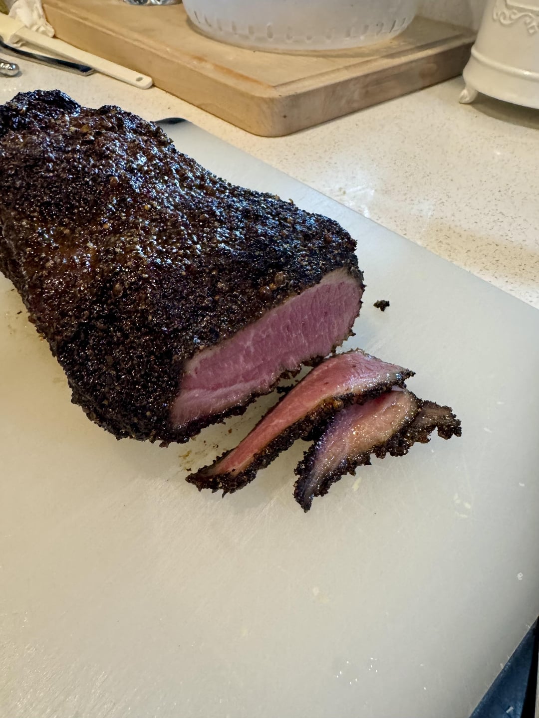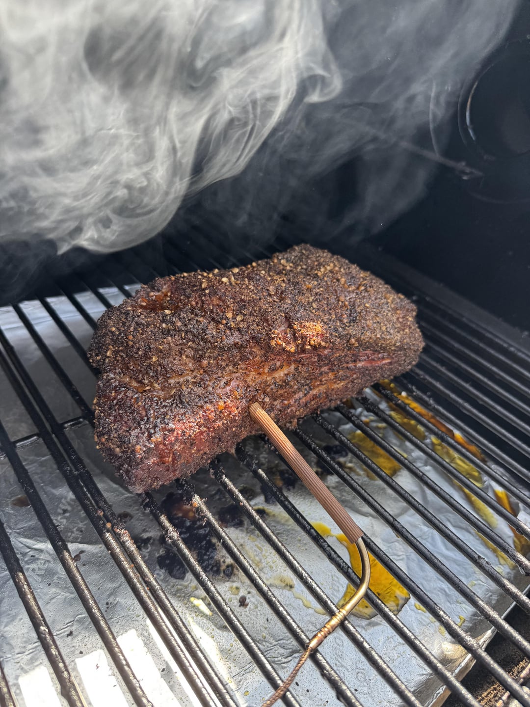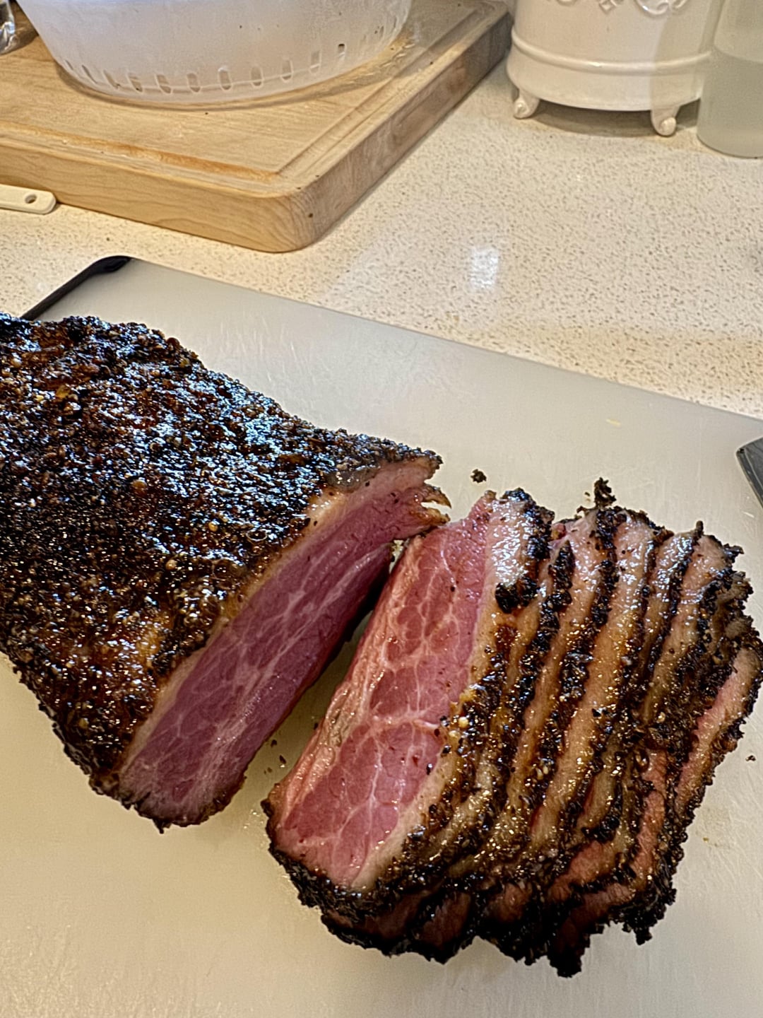 3lb Cured Brisket, smoked at 225F 1 hours, 250F 2 hours, 275F 3 hours. Rested at ovens lowest temp (170 for me) for 3 hours. Sliced and served on Rye bread, Russian dressing, sauerkraut, Swiss cheese, and side Claussen pickle. Poured up the Guinness, cheers