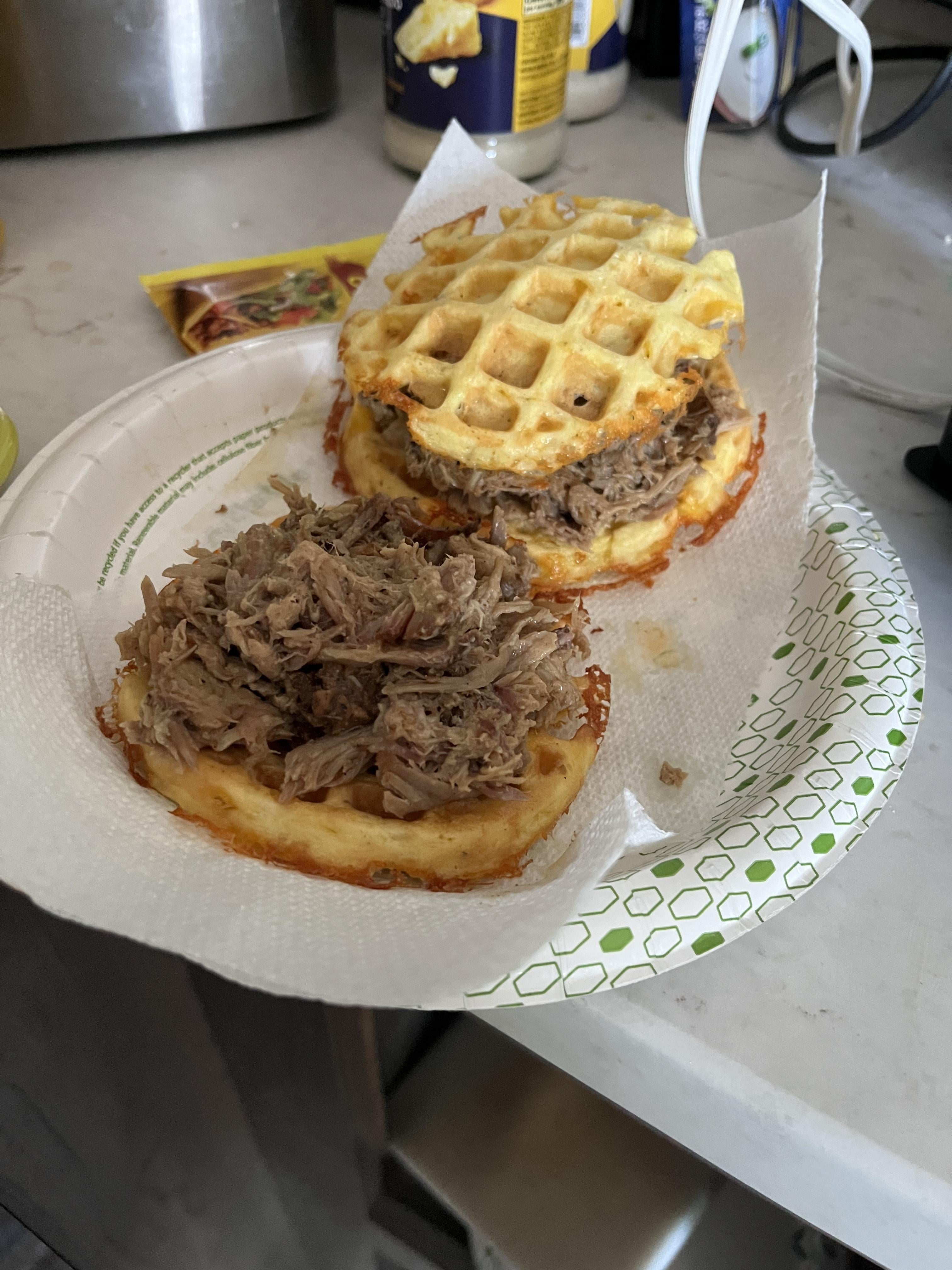I had some left over pulled pork so I decided to have chaffles.