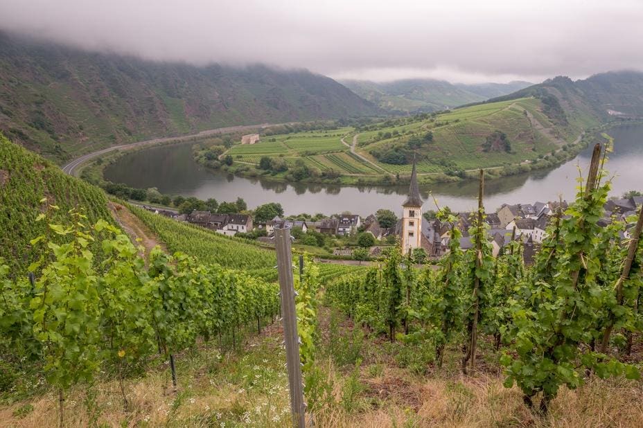 It’s an unseasonably warm June day standing atop Weingut Carl Loewen’s block of vines in the Thörnicher Ritcher Vineyard. Looking down the 97º slope, one question comes to mind: Why would anyone plant vineyards here?