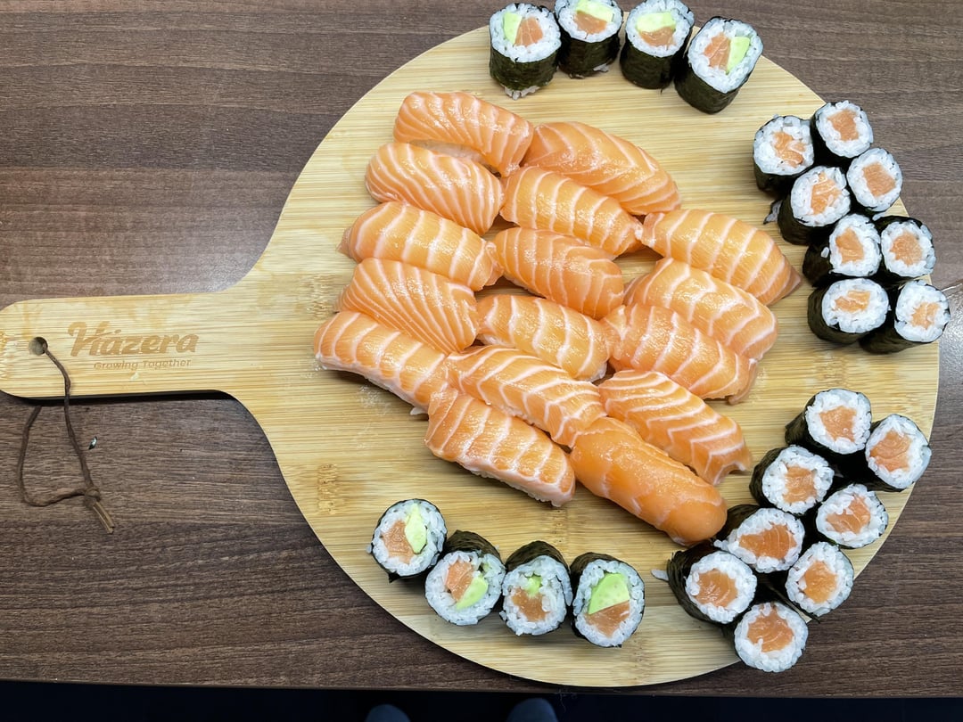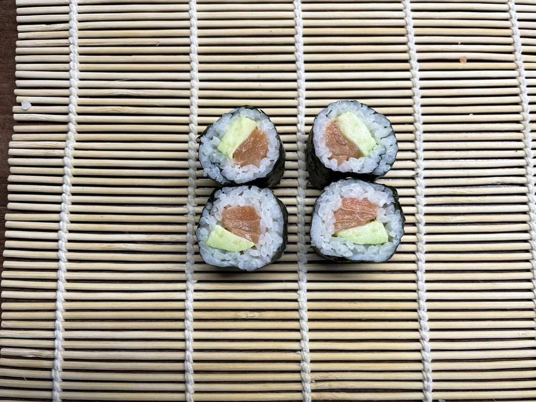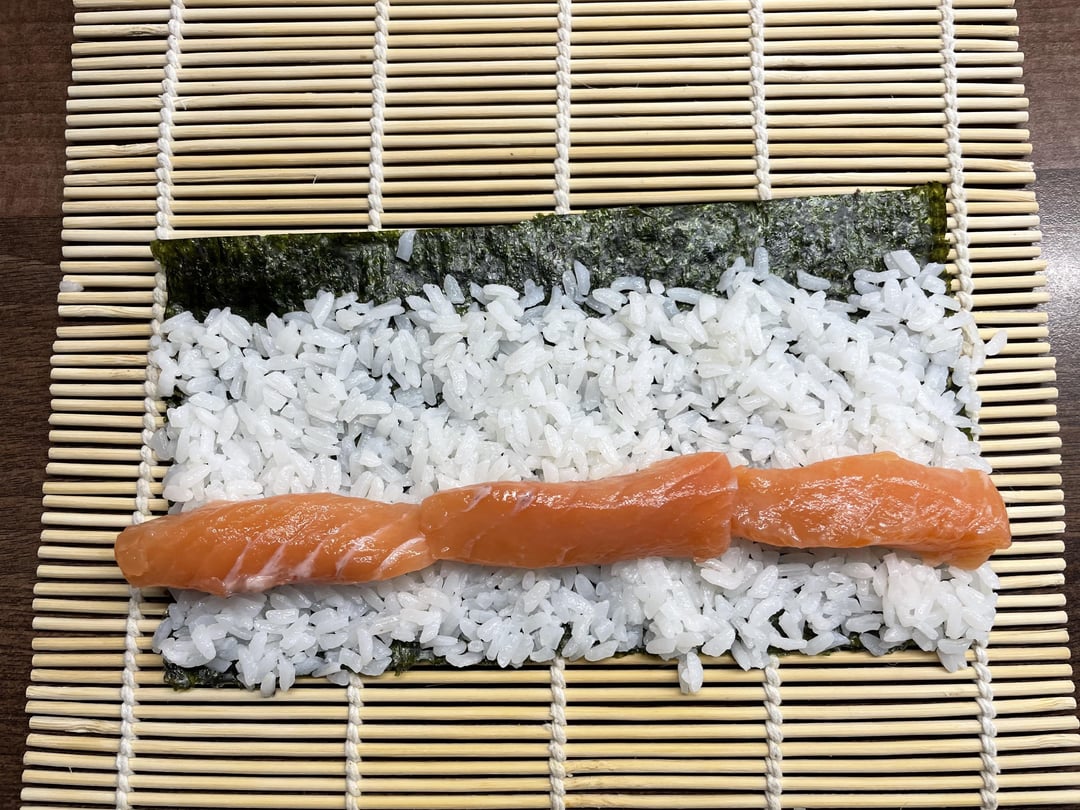 For the bigger maki rolls I use 2/3 sheets and also leave a bit of sheet on top with salmon and avocado.