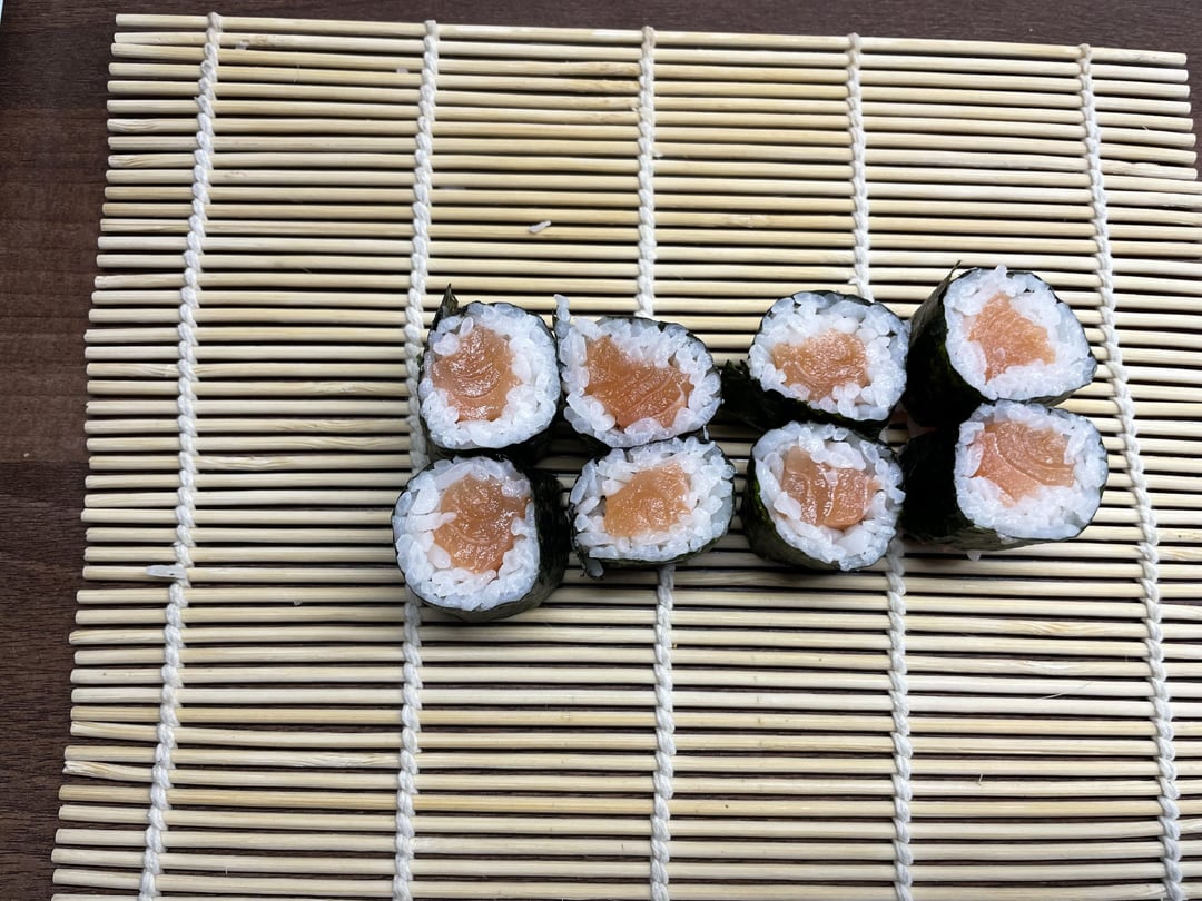 For the maki rolls I use half sheets and leave a bit of sheet on the top to have a centered roll.