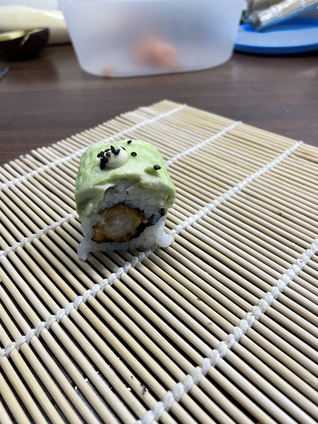 maki with crayfish in QP mayo and cucumber on a 2/3 sheet and rolled it the same as pic #3.
