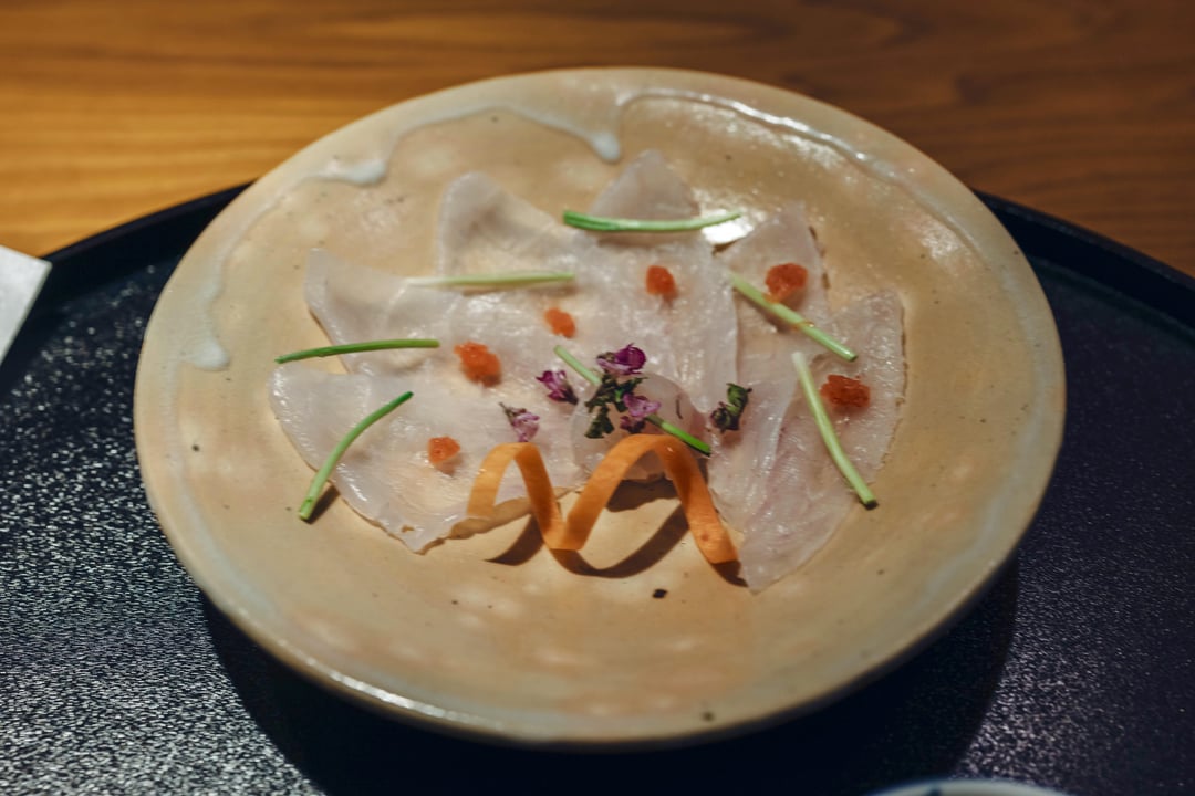 I took a quick 15 minute train ride from Koriyama station and it was a short walk to the restaurant. Its located in a suburban household area, exterior is very modern with its clean and dark structure but interior is very traditional. I’m greeted by the hostess and led to the counter which is just myself. Igarashi will typically only allow one party at the counter (max 4) depending on the situation, I’m so glad I booked the counter as it was just an unforgettable evening. They do have 4 private dining rooms with sunken kotatsu or chairs. Chef Igarashi appears after drinks are ordered and quickly introduced himself. He usually will check if the guest has any preferences or dislikes, I didn’t realize this at the time but he would customise the menu based on my response and also feedback during the meal. I told him I usually eat steak at home so he added uneme wagyu to the course later for me. I also said I eat anything and not picky so he could have free rein and would always ask me how the food was. He said there were a lot of picky eaters both foreign and locals so he was glad he could have complete freedom in picking the dishes.