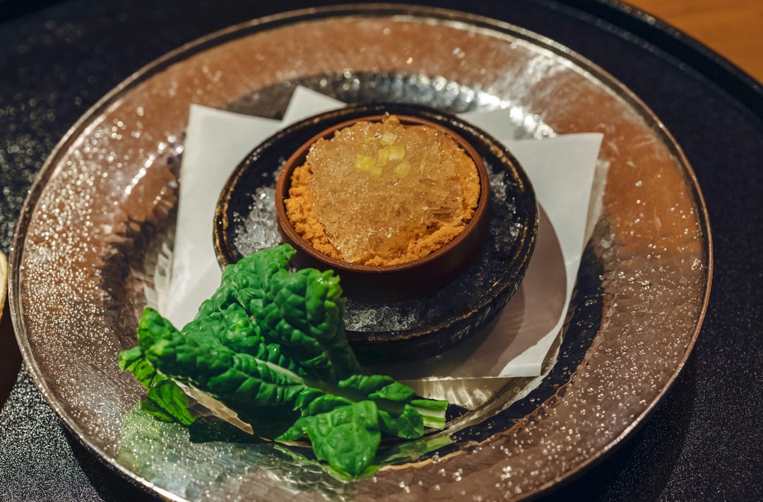 1. Matsubagani roe,crab dashi jelly and citrus