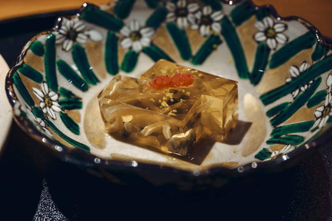 5. Fish dashi soup with karasumi, tai fish, daishi jelly
