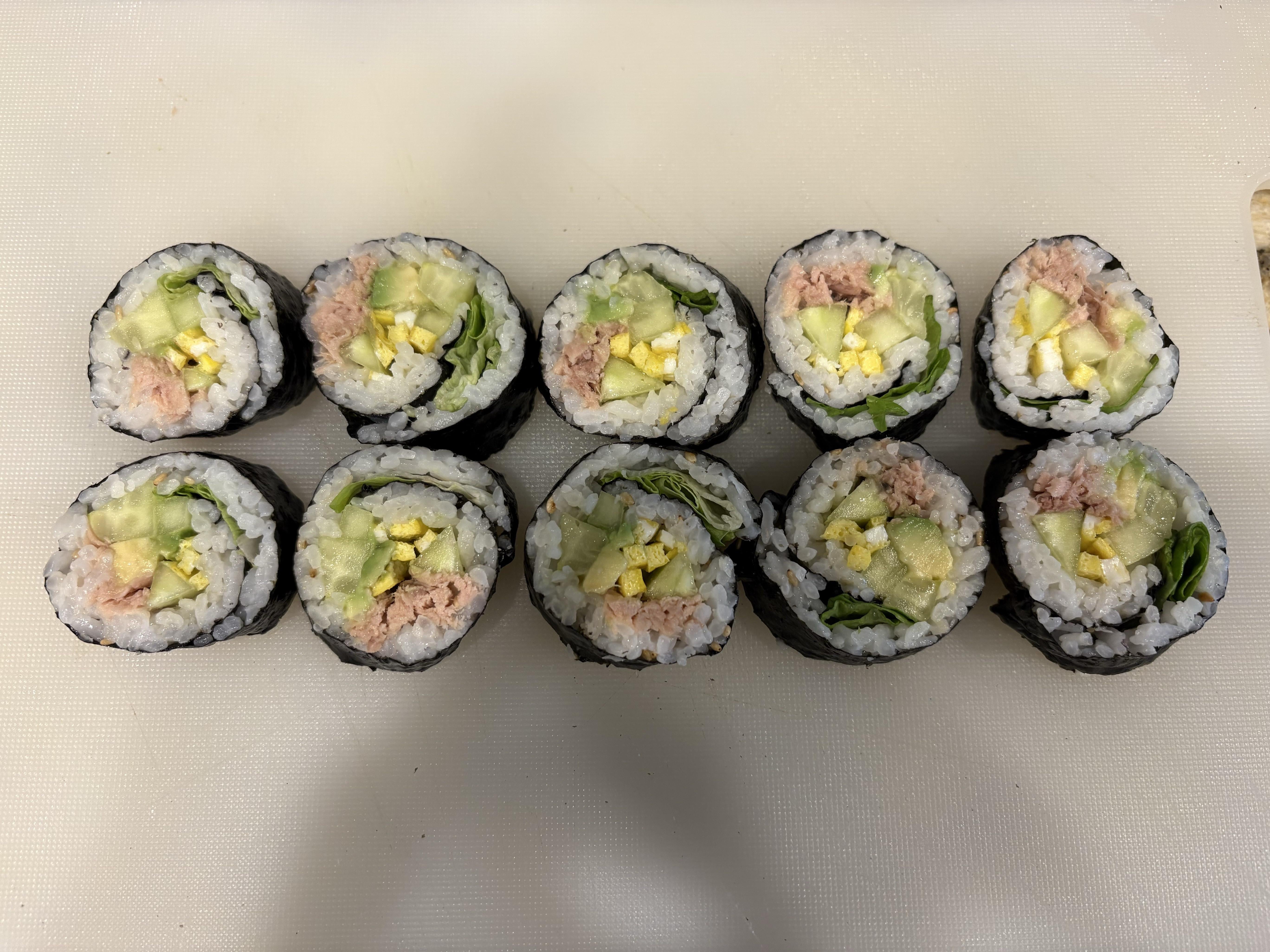 These look amazing for first time! If you’re using a rolling mat thingy, once you have it rolled just give it a good squeeze and it will help with the loose roll problem