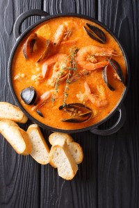 Cioppino is an Italian-American fish stew dish that originated in San Francisco with of cod, shrimp, mussels, and scallops.