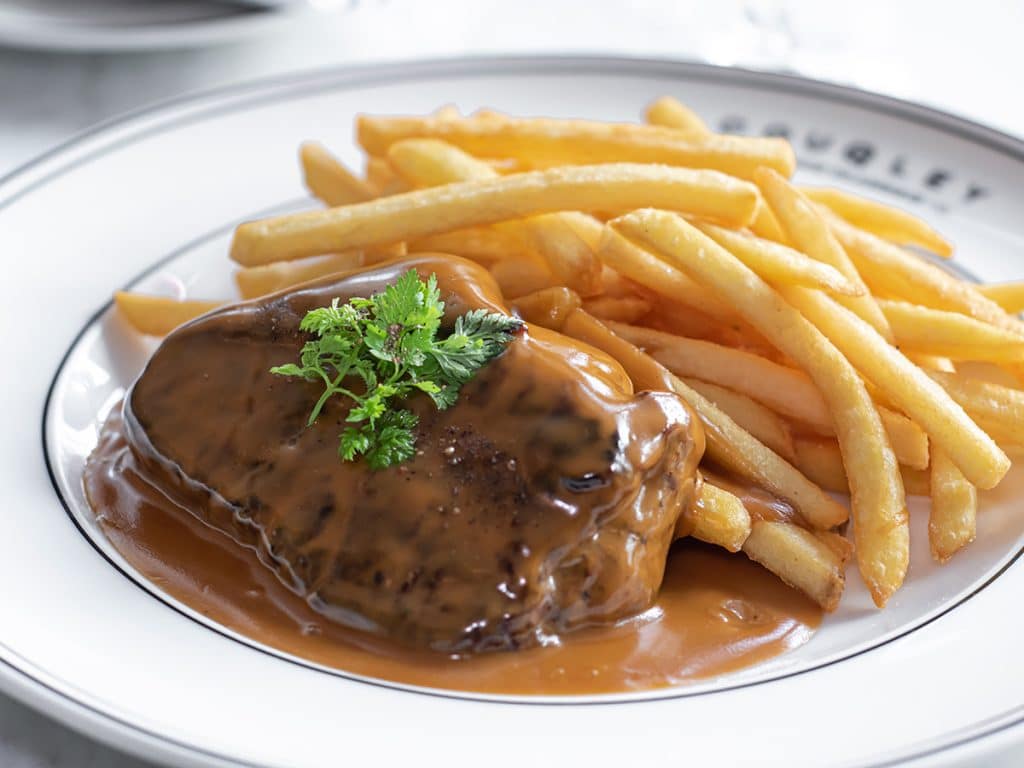 Think beef tartare, French onion soup, escargots in white garlic butter, onion tarte tatin, ratatouille, beef tenderloin Rossini and Dover Sole Meunière-style. Chef Remy Marquignon’s seven-course degustation menu is well worth a try, finishing with an exceptional chocolate tarte soufflé.