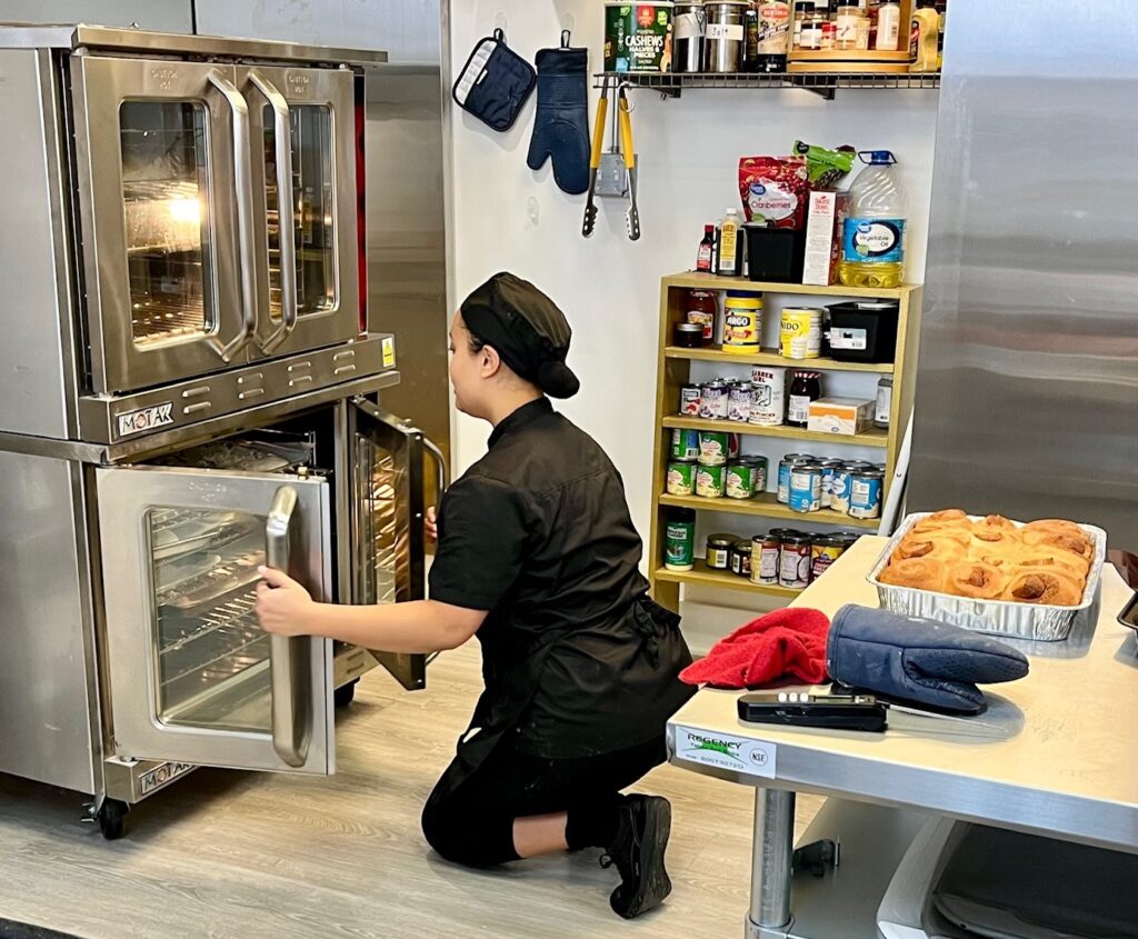 Pastry Chef Samantha Moredo checks on some bakery items in the oven at the new FiliChateau pastry shop in Mt. Juliet. LAURIE EVERETT