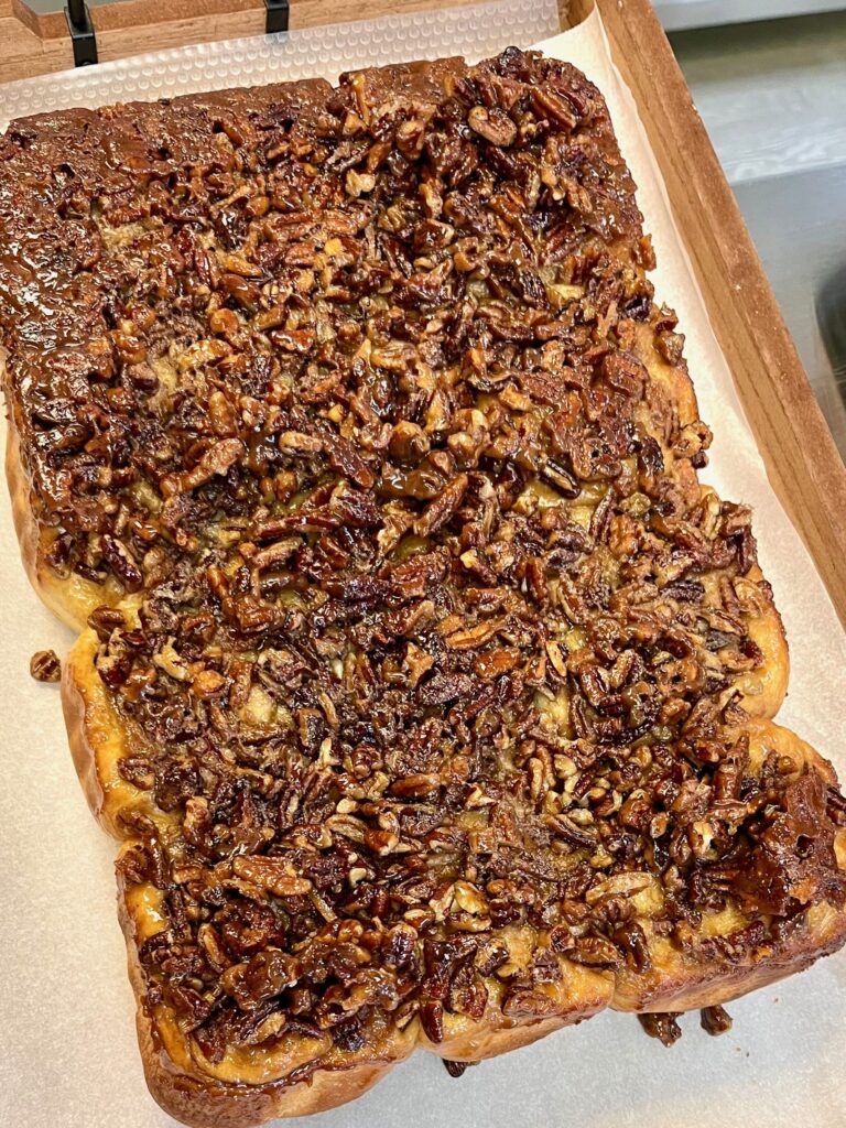 On the menu: French and Filipino pastries, pecan rolls, brownies, French baguettes, cinnamon chocolate rolls, croissants, tarts and cream puffs.