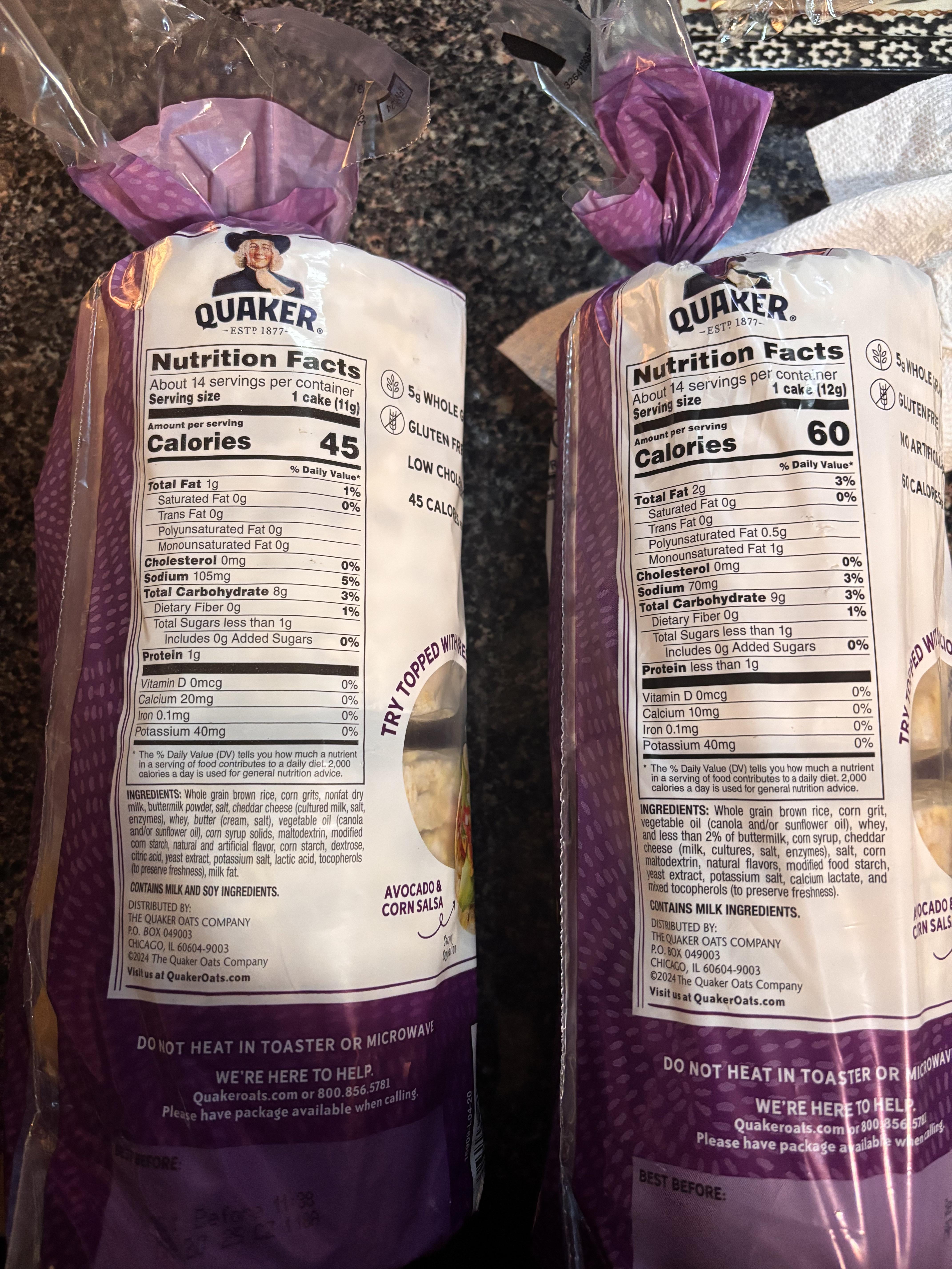 Did they make rice cakes higher calorie??? I was about to eat some and I noticed that it was higher than usual and boom, I see two different calories for the exact same packages!!! by 5B3AST5 Write A CommentYou must be logged in to post a comment.