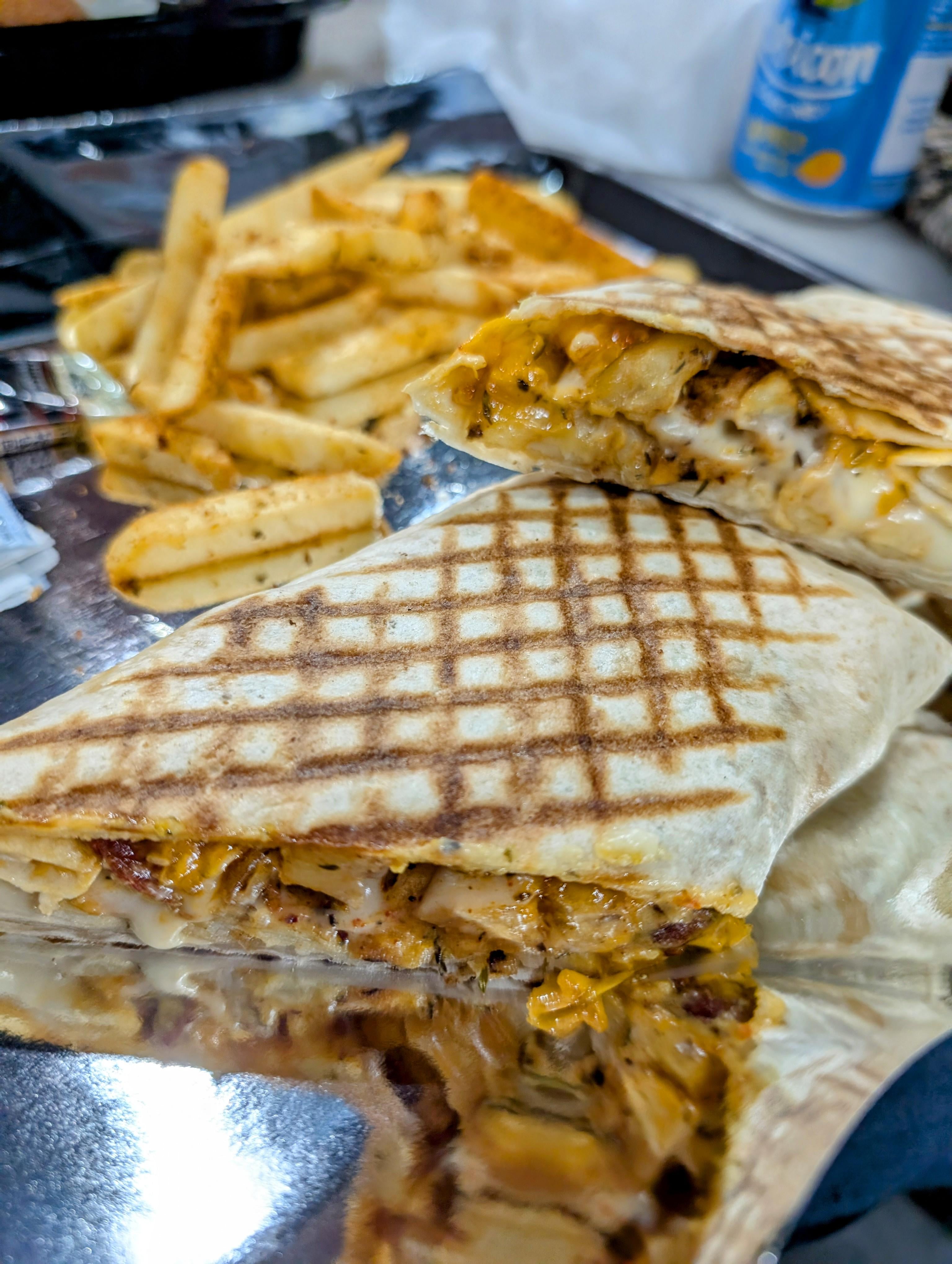 Not gonna lie, this was top tier hangover food. Served with more fries and a mango Rubicon to try to help it all down.