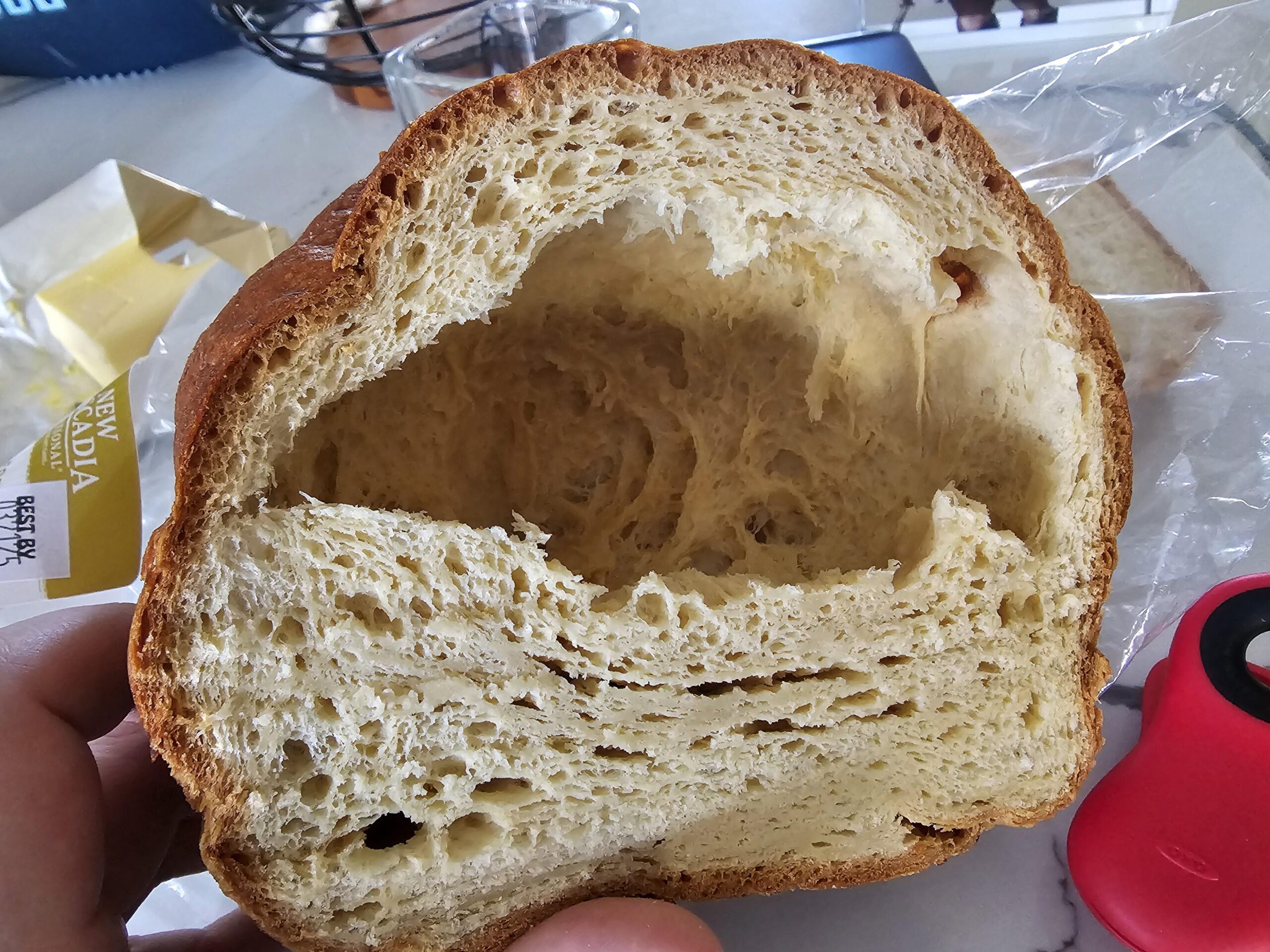 Someone did a horrendous job rolling and folding that dough. Then again, sometimes you have a bastard of a loaf that was doomed from the start.