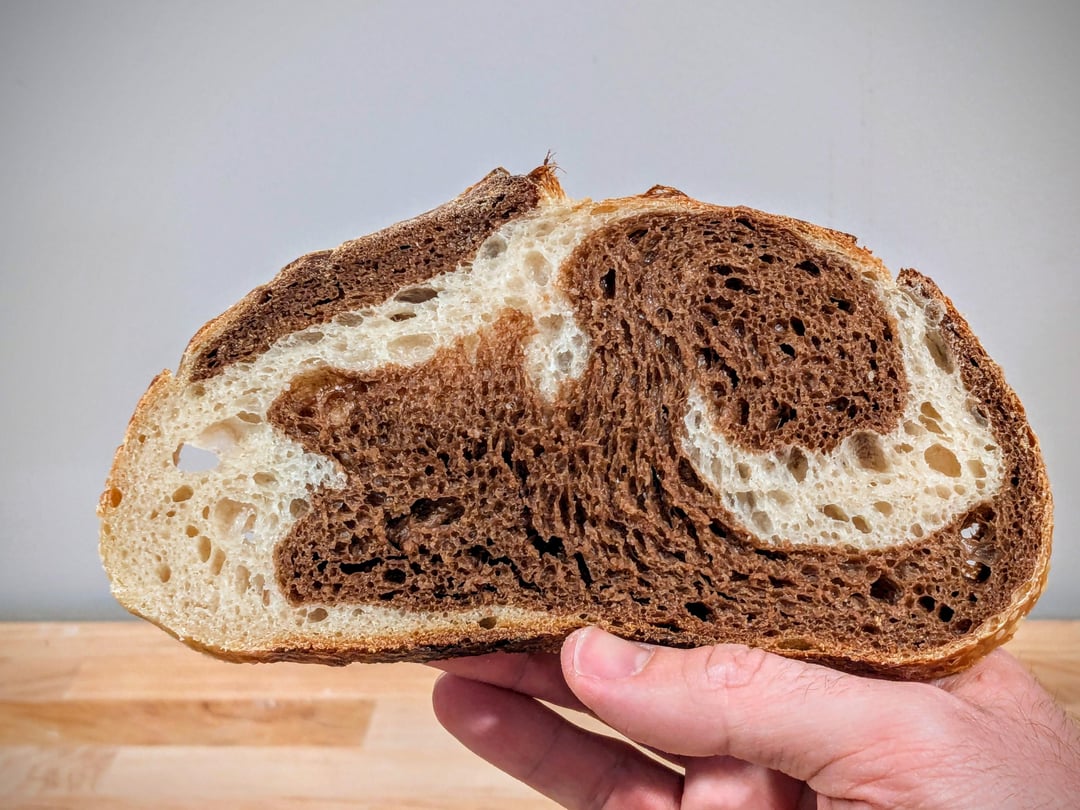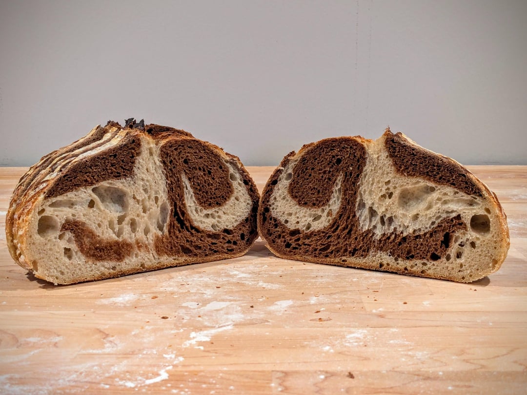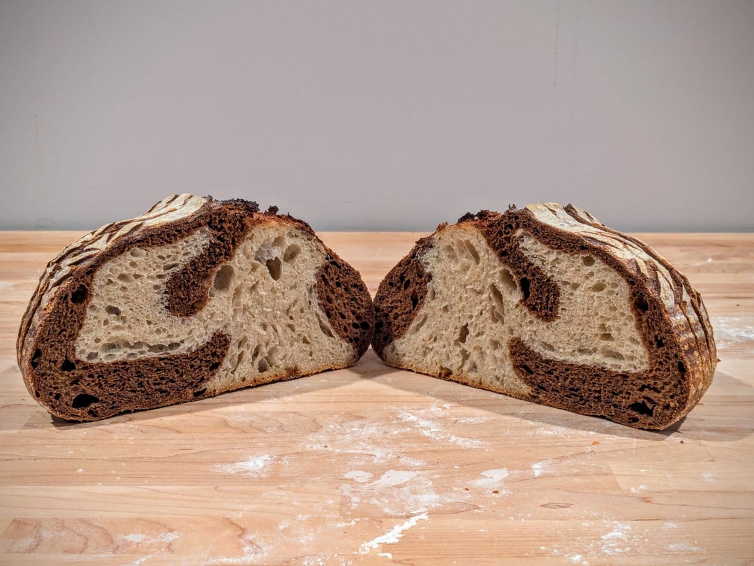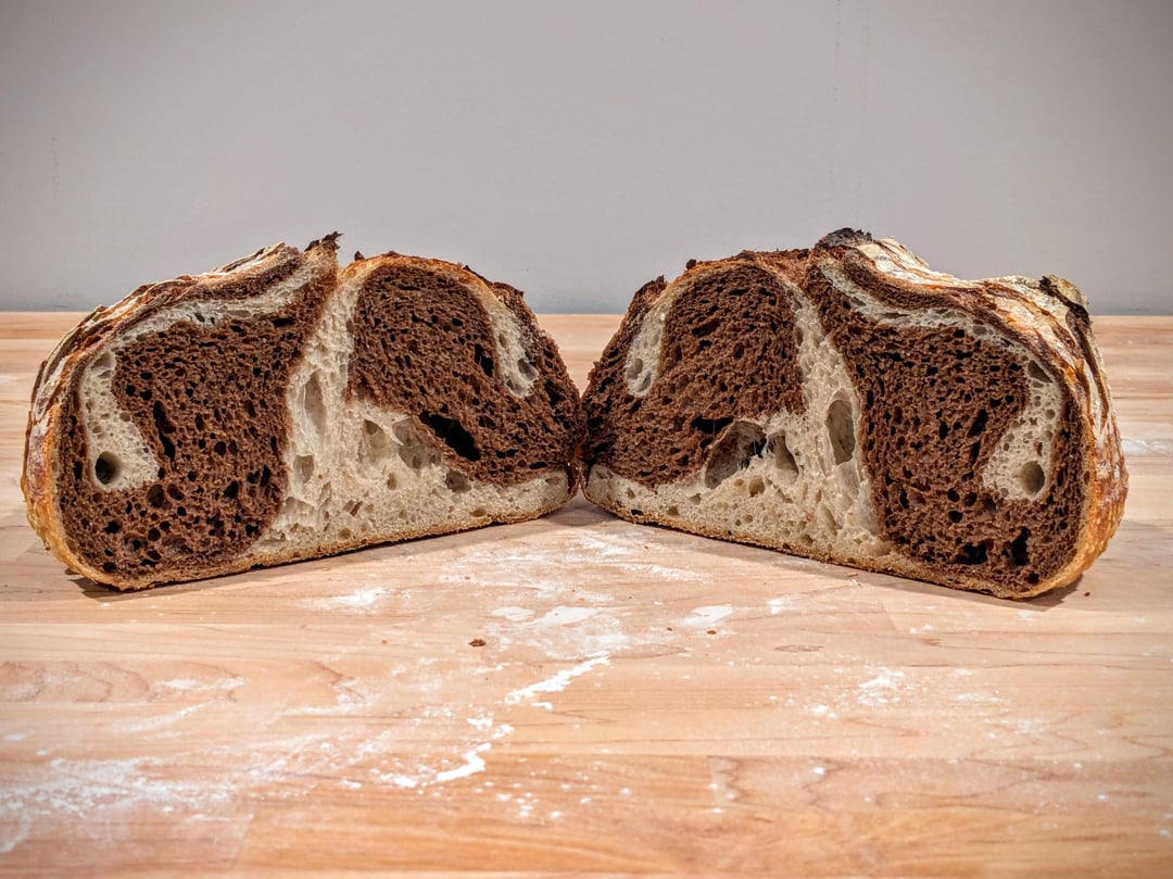 Some marble rye test bakes from this weekend. Love the different marbling patterns!by TimeEggLayer 5 Comments notsosolo 11 months ago Looks great. That’s a type of bread I love, and have yet to try making. StreetTacos25 11 months ago Beautifully done!! CorvidCuriosity 11 months ago These look great, I would 100% reel these up with a fishing hook from a 2nd story apartment window! myfrontallobe10 11 months ago so satisfying!!! birdqueenx 11 months ago Gorgeous loaf!Write A CommentYou must be logged in to post a comment.