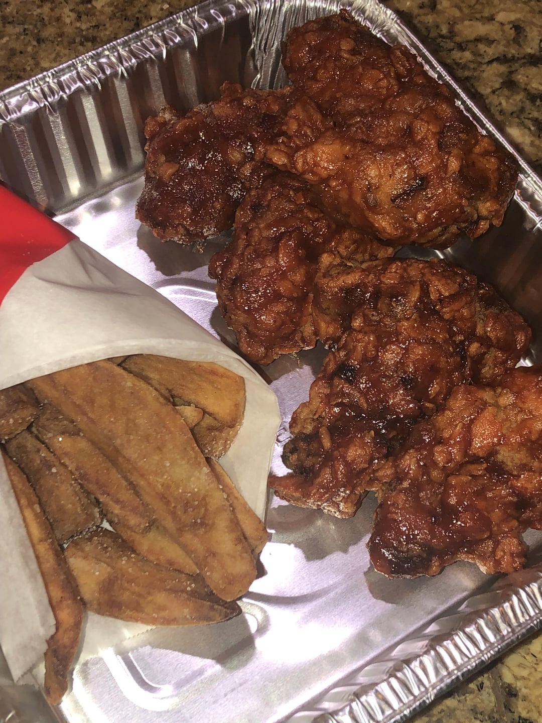 Tried my hand at the KFC honey bbq wings + wedges from the 90s/2000s