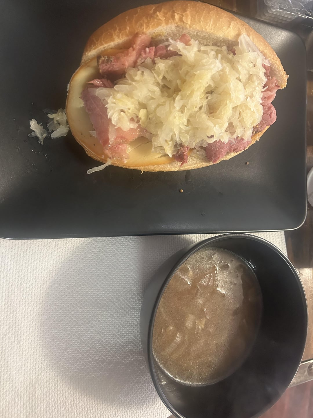 smoked some corn beef with a it with spicy brown mustard binder. I then seasoned it with pepper, mustard powder, white pepper, onion powder, garlic powder. I smoked it at 225 for 4 hours. I then braised it with onions, garlic, chicken stock, and beer for two hours at 300. I cut on deli slicer and made sandwiches.