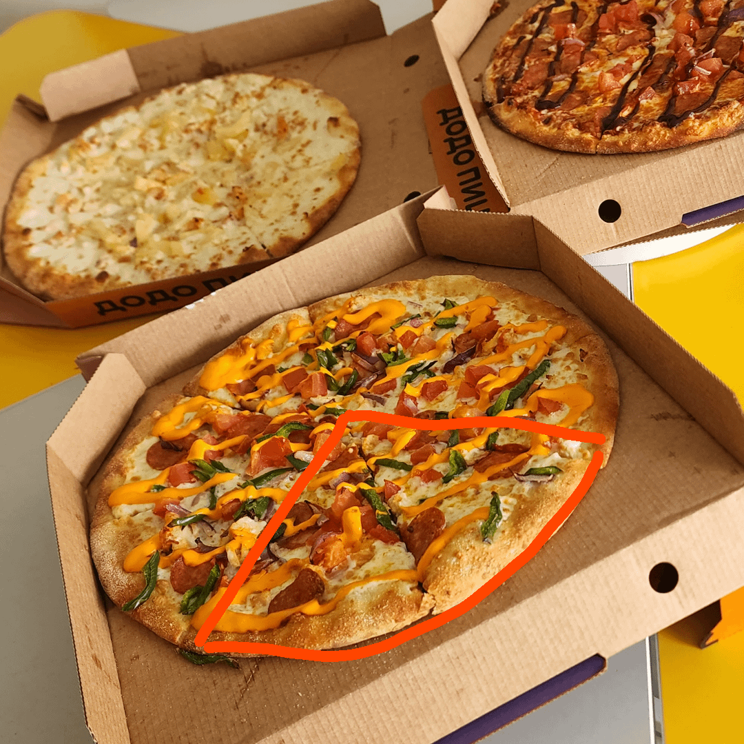Pizza slices probably like = 240-260 each