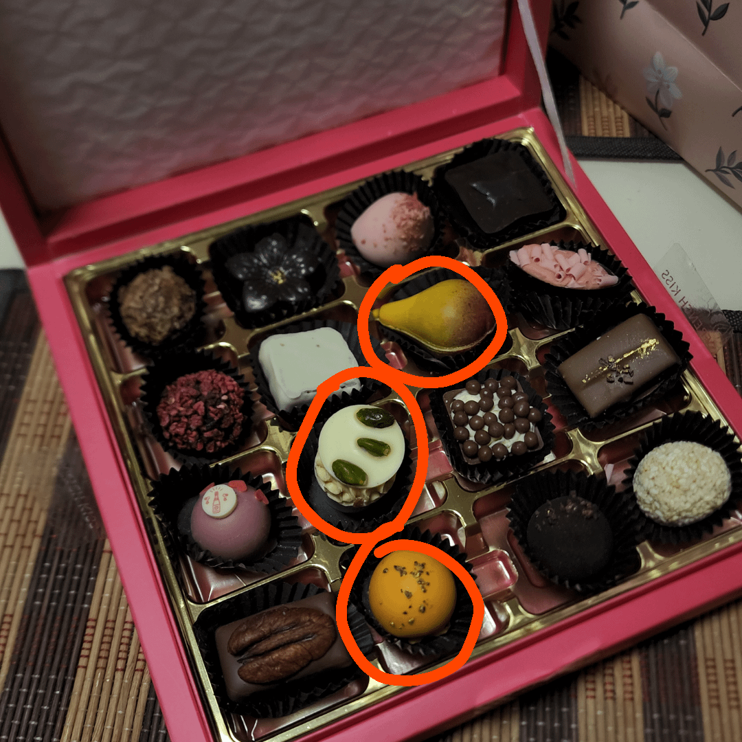 idk I didn’t count but how did you manage to pick the three worst looking chocolate truffles