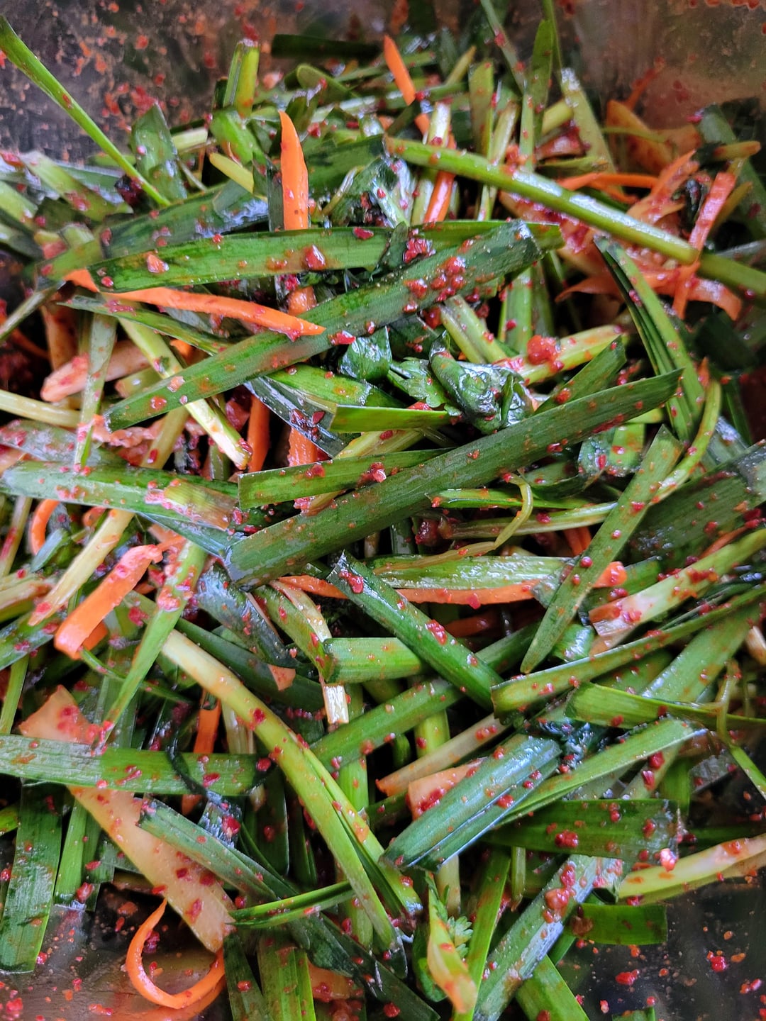 부추젙걸이 goes sooooo well with 순대국. Never had it with cilantro before. Do you think it goes well together? Now I’m craving some 부추 — maybe I’ll make some today 🥹