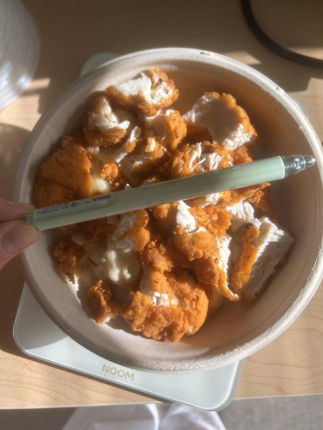 That’s what I would estimate for the chicken alone. Do you think they intended that number PER SERVING (as in 2servings or 620cal per bowl)??