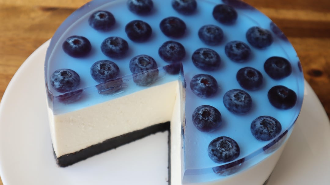 Place washed and dried blueberries on top of the set cheesecake.