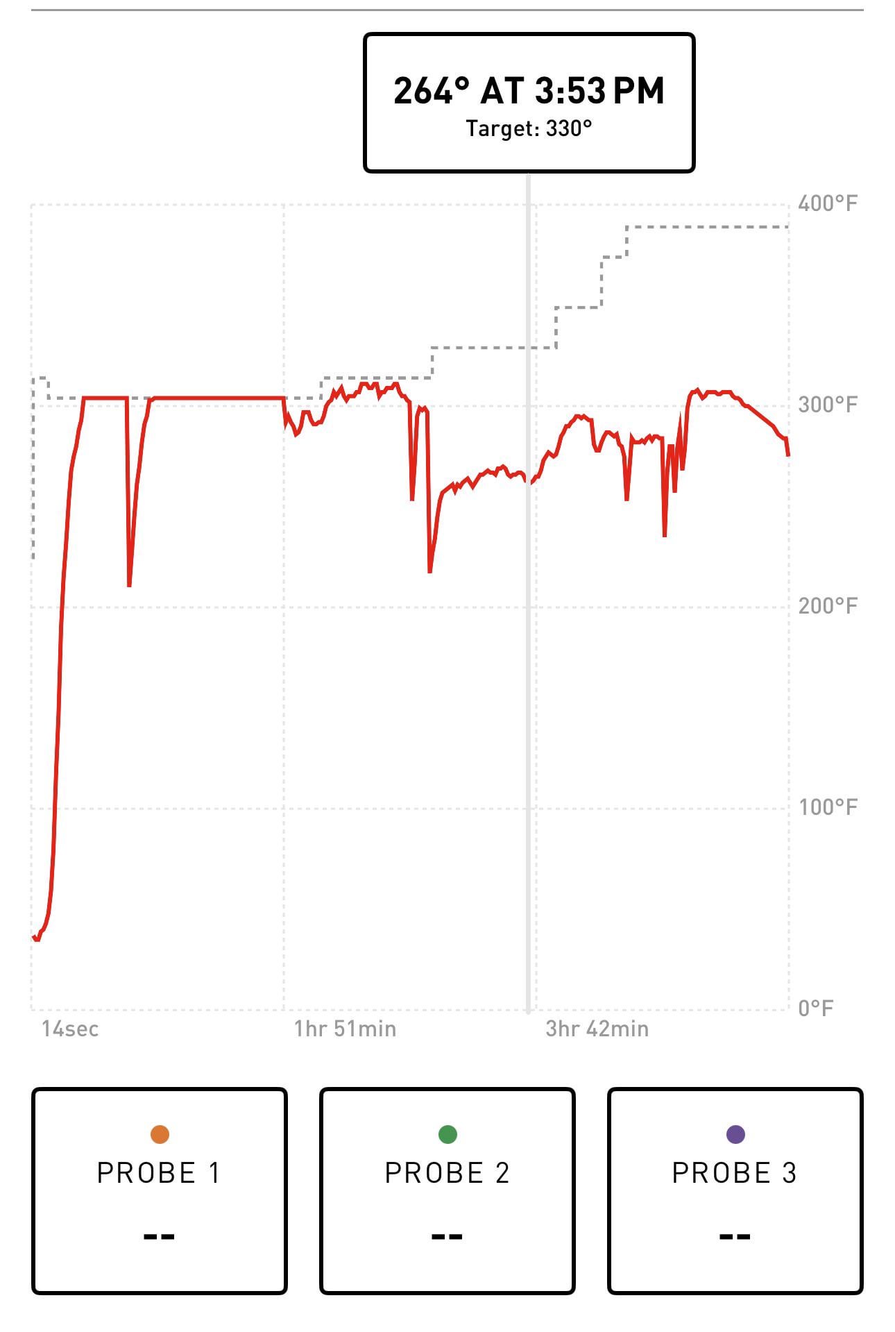 The big drops were me opening the vents for 10 seconds to spritz the ribs