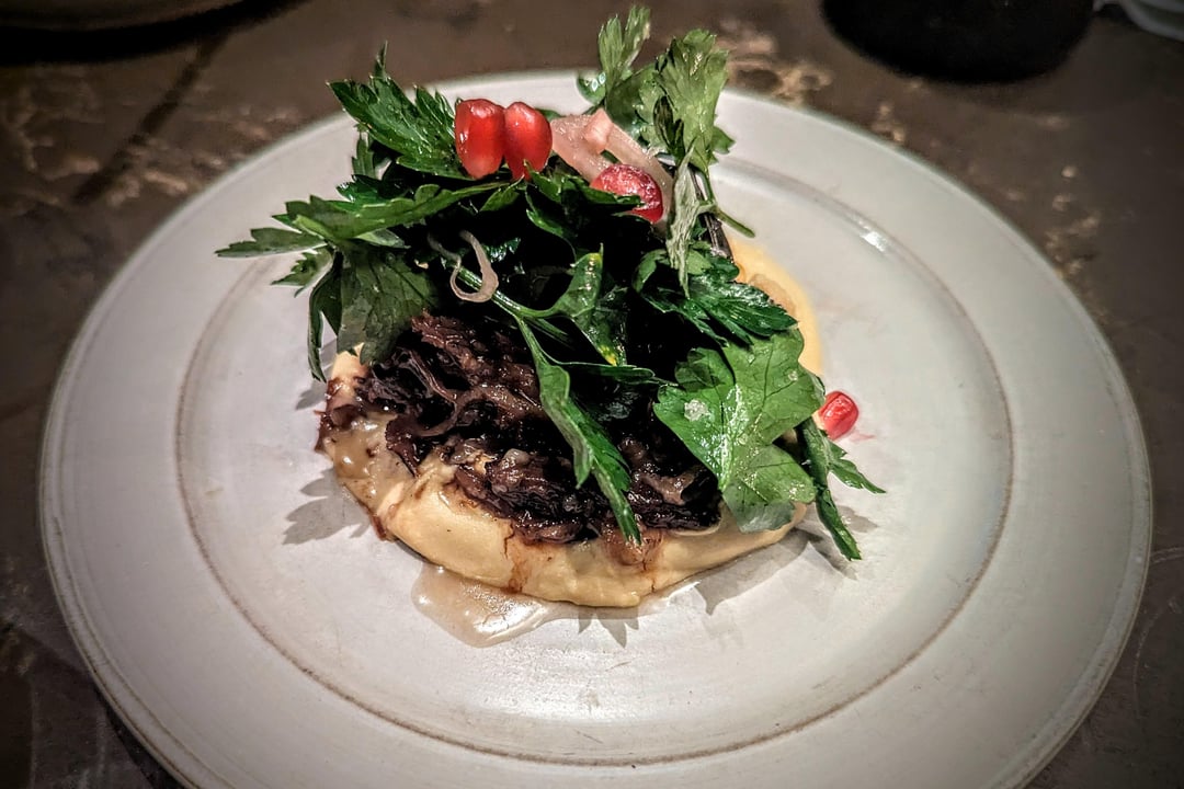 The charred lamb belly was wonderfully tender and fell apart under the knife. However, the garnish was gratuitious, and the hummus that acted as a bed for the lamb was a fairly absent supporting cast member.