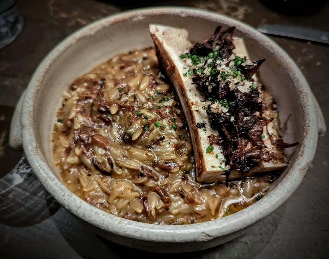 3. Oxtail giouvetsi, bone marrow, beef fat pangrattato