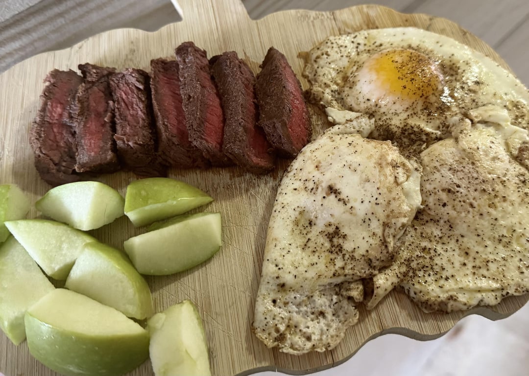 Good job on the protein, now add some vegetables, especially leafy greens ( not iceberg even though it’s yummy), kale, spinach, etc. Then add some good fiber, squash, sweet potatoes, and broccoli. You got this!