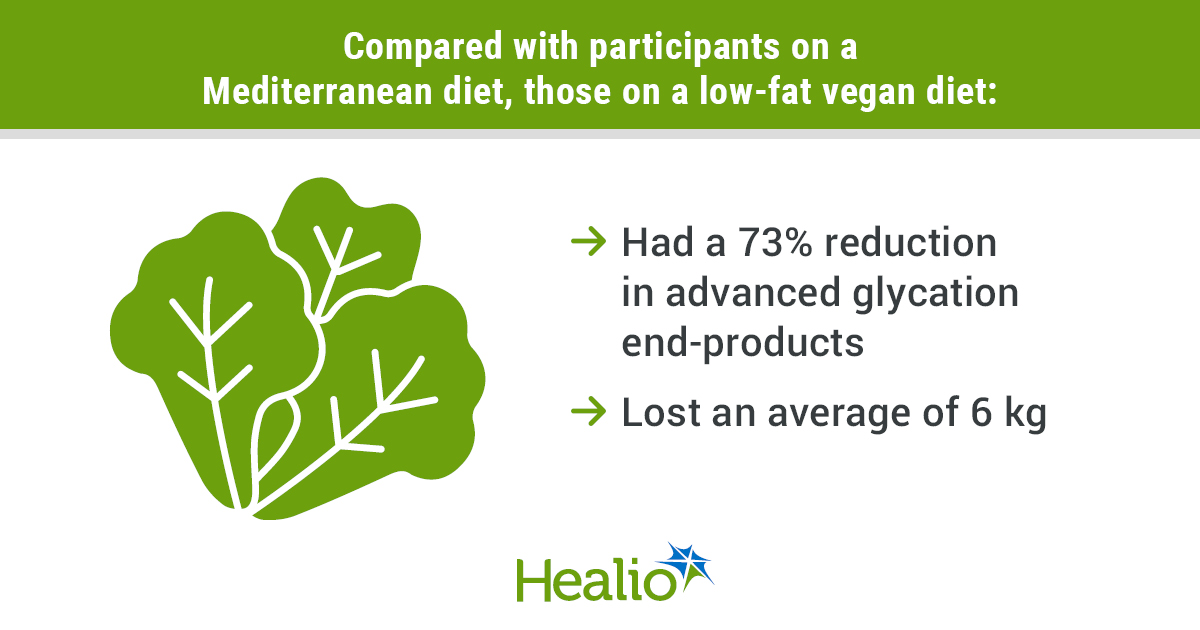 “While a Mediterranean diet is often considered low in meat, removing that meat led to the greatest reduction in dietary AGEs,” she explained to Healio. “Also, the olive oil in a Mediterranean diet is usually touted for its health benefits, but removing it, along with other added fats from animal products, led to a significant reduction in AGEs.”